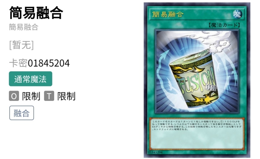 俗称杯面,可无条件拉出五星及以下的融合怪兽