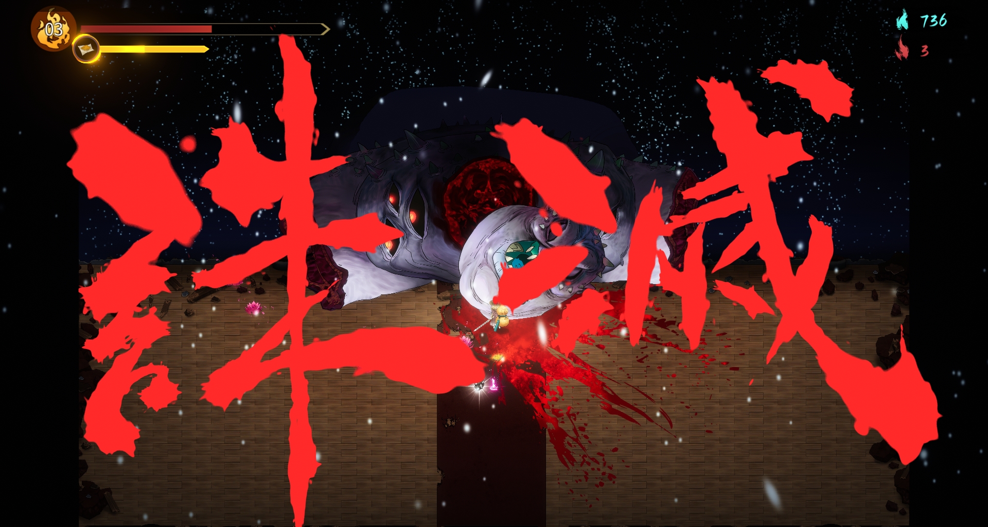 这个狼需要注意它的冲撞,撞一下,伤血很多。瞬身由于无敌时间短,你可能会在闪的时候被撞倒,之前在这里翻车过几次,相当烦人,躲过冲撞后随便打,甚至玩飞剑流派,直接一波就秒杀了