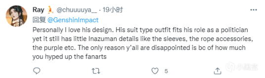 我个人喜欢他的设计,他的西装元素服饰适合他作为政Z家的角色,且服饰上仍有稻妻的细节,尾穗,紫色,绳结等。你们失望的原因是大肆宣传同人画。