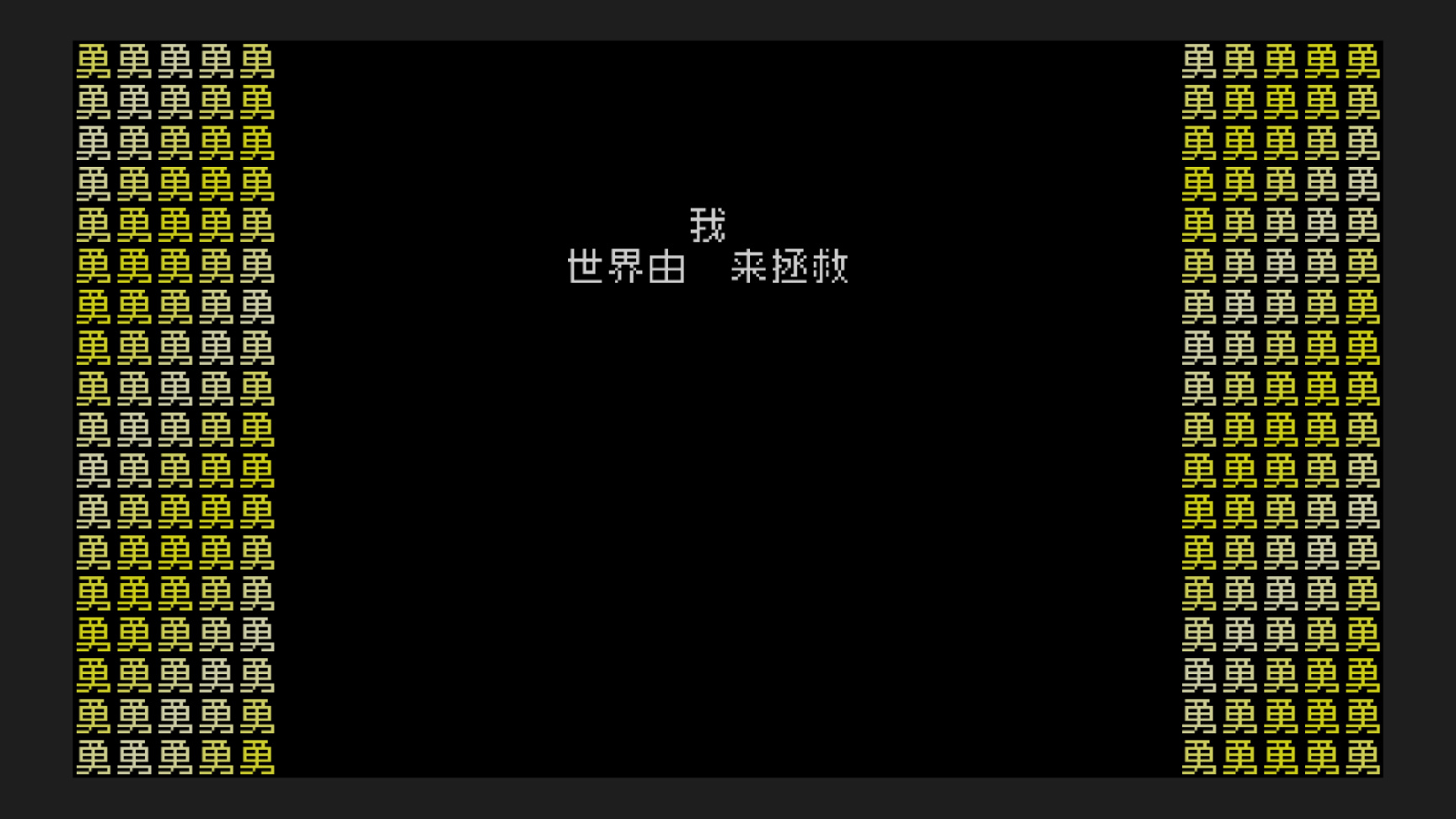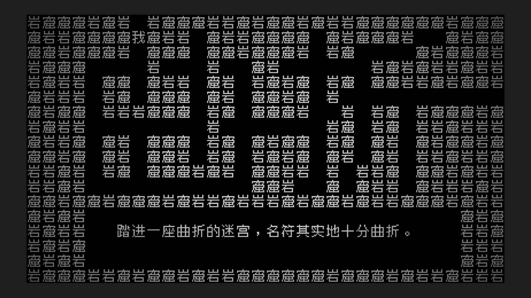 《文字游戏》这款游戏的画面可以说是我浅薄的游戏经历以来最为奇特的游戏了,按照分类他理论上应该属于像素游戏,只不过像素游戏是用一个个像素点作为基本单位来表示画面,这款游戏则是使用汉语文字作为基本单位拼凑起了这个游戏的画面。我第一次见到这款游戏的时候是一个主播在首发当天的直播,我通过直播知道了这款游戏,但是当时已经进入了游戏的中期,并没有很大的场面,或者是什么CG(对,这个游戏也是有类似CG的东西的),所以我对他的画面要求就没有很高,只要能玩就行。