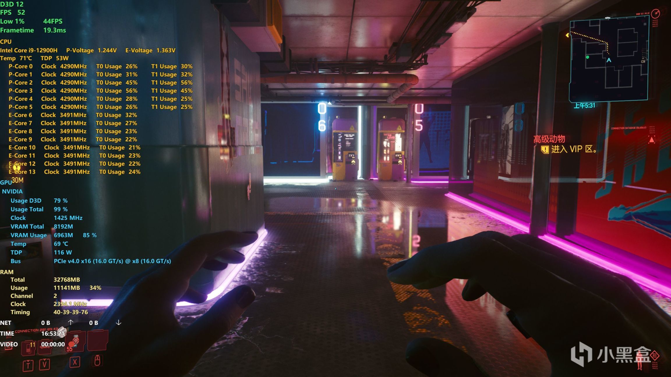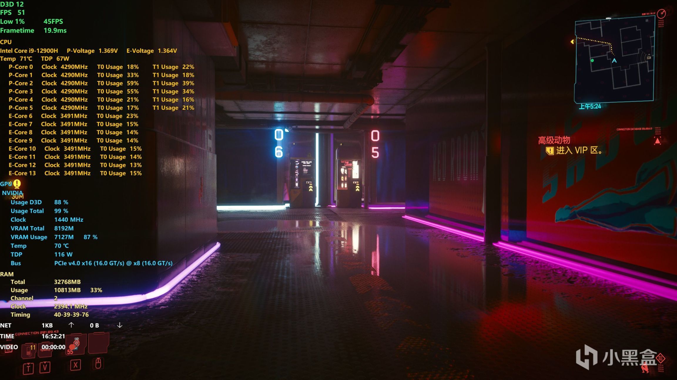 不开光追45帧,开了光追52帧,2077的优化还是有待提高。