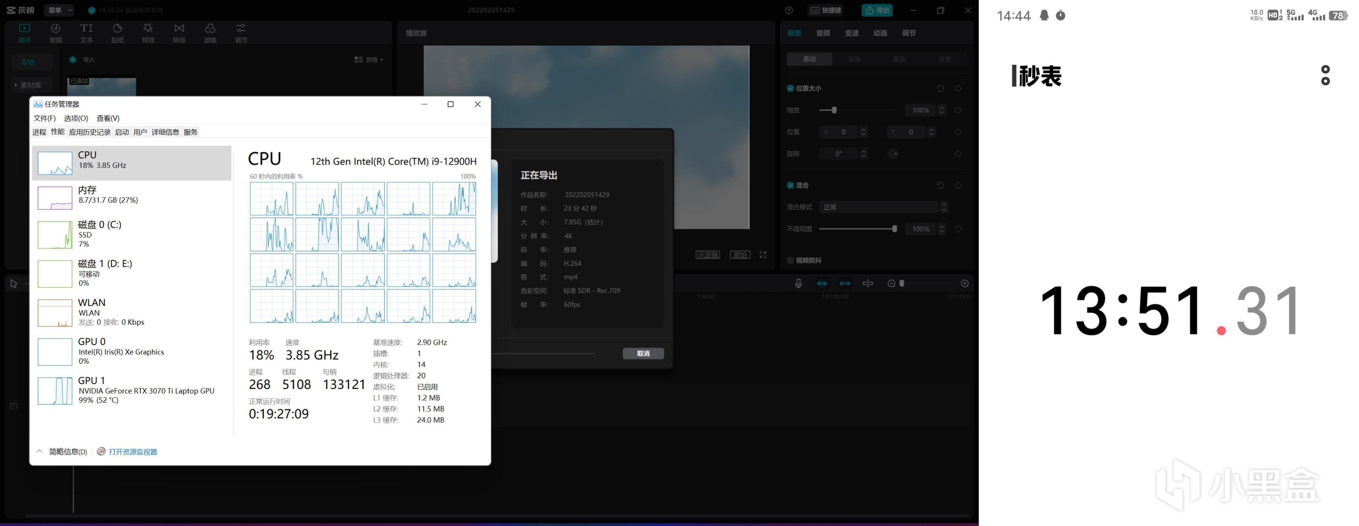 使用剪映的GPU加速导出《多田君不恋爱》第一集的4K 60帧视频用时831秒。