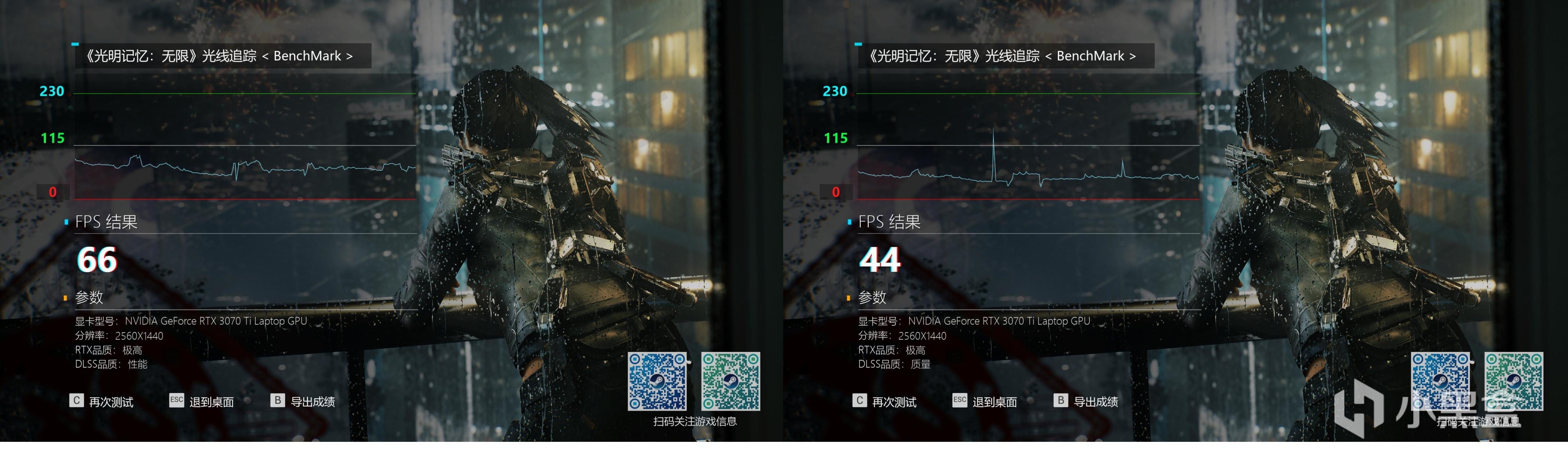 光明记忆在2560x1440分辨率下的极高光追和DLSS性能情况下可以做到66帧,属于流畅可玩的状态。