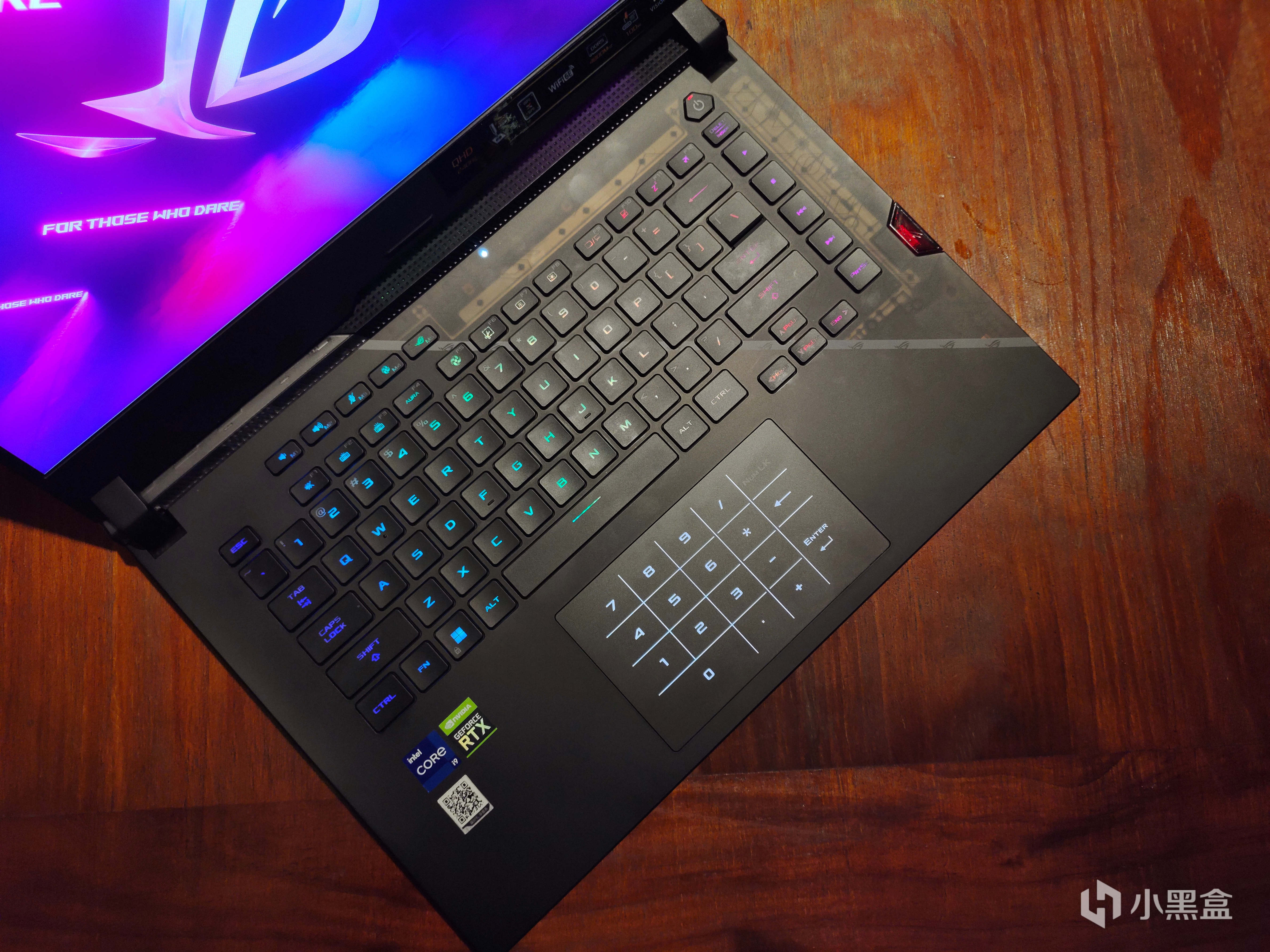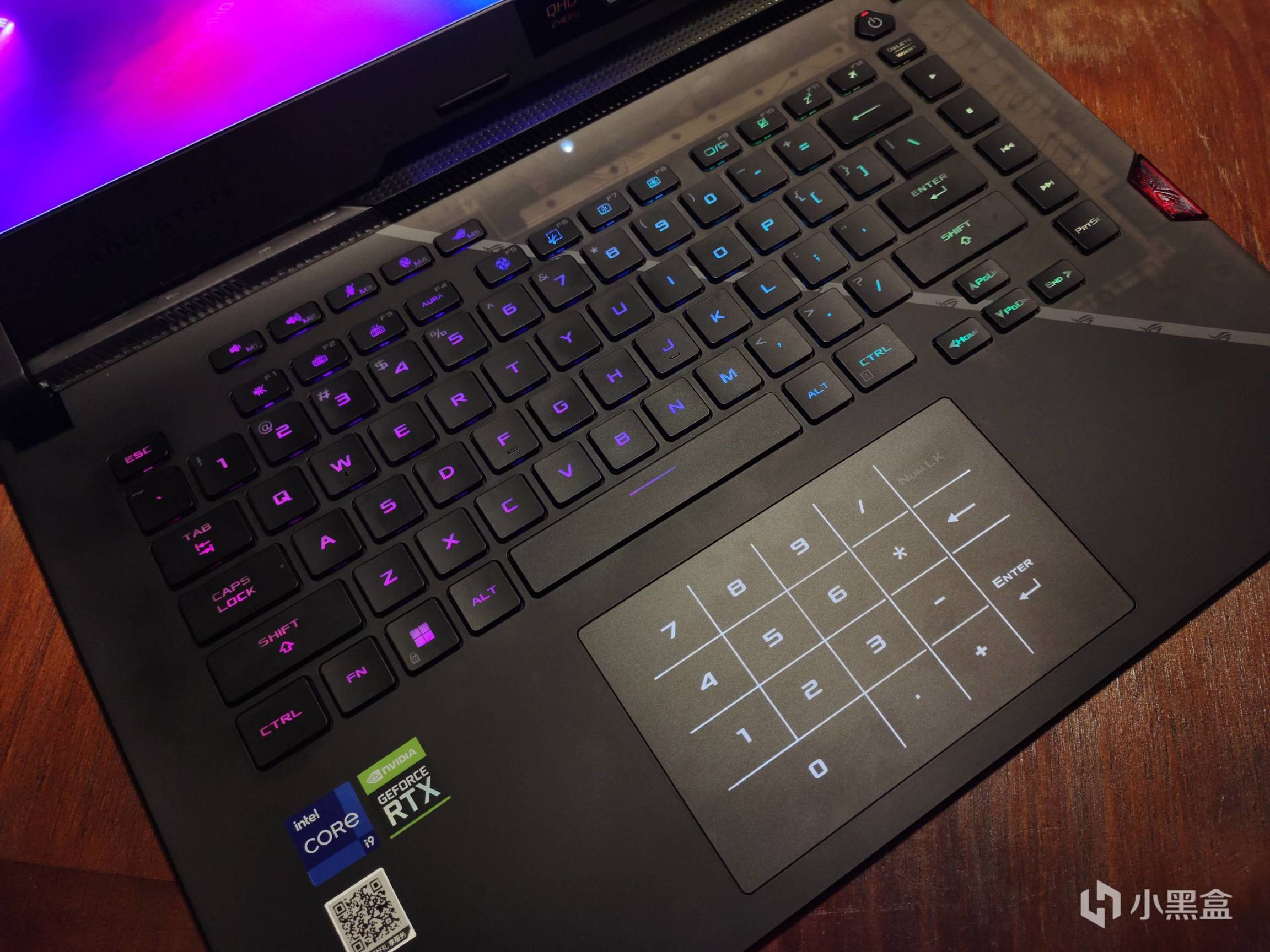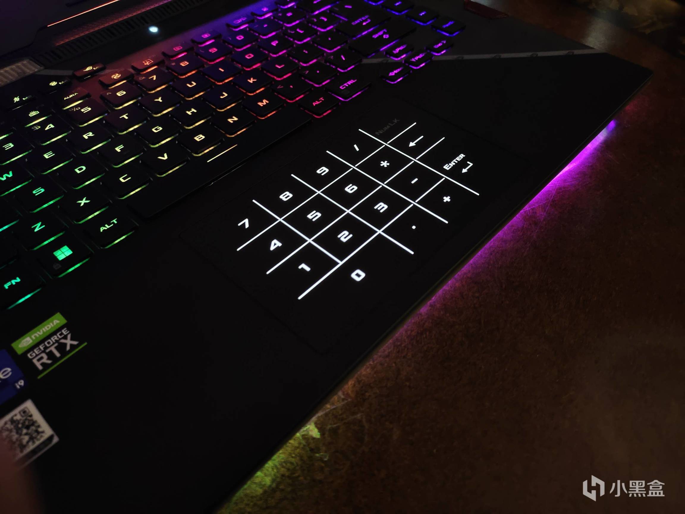 虽然在键盘上没有数字小键盘,但是他们将之前灵耀的触控板+小键盘的设计放到了枪神上面,这样就补足了没有小键盘的问题。
