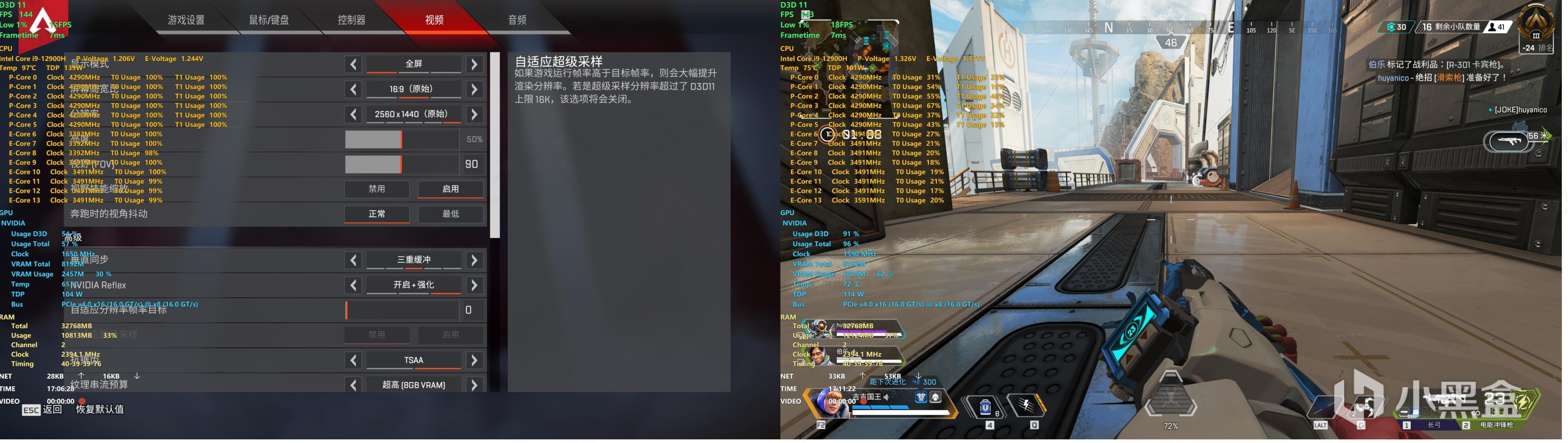 Apex在最高画质下,即使是实战可以跑到144帧。144帧足够玩了,至少排位没什么问题。