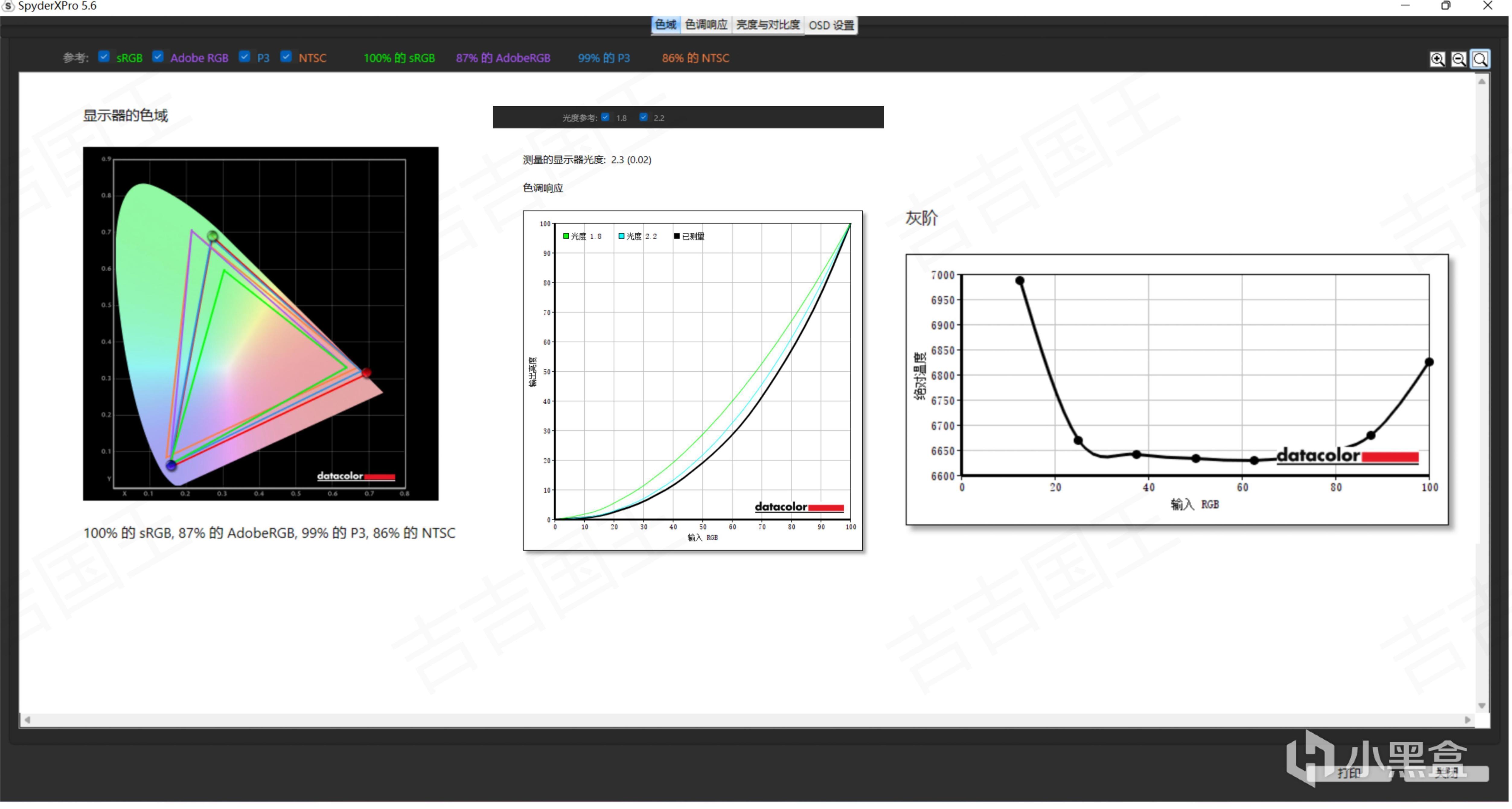 屏幕色域覆盖为87%AdobeRGB,99%DCI-P3,86%NTSC。