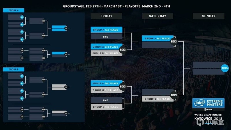 现如今大多数IEM赛事采用的是双败赛制,顾名思义即一支队伍失败两场就会被淘汰出局。在所有战队进行第一轮两两PK后,会分为胜者组与败者组,获胜的队伍进入胜者组,失败的队伍进入败者组,之后的每一轮在败者组的失败者都会被淘汰,直到胜者组与败者组分别产生一支小组冠军,之后进行BO3的淘汰赛。一般来讲在胜者组决赛获胜的队伍将会直接进入半决赛参赛,这也是对他们在小组赛表现优异的奖励。以2018年IEM卡托维兹为例,我们来看一看晋级导图。