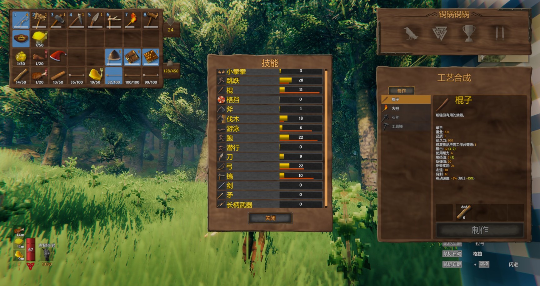 笔者在前文说过,《英灵神殿》并不适合独狼玩家,其实有很大一部分原因在于我认为其怪物与BOSS战设计结合起生存系统对于单名玩家而言任务实在是太过繁重——在游玩过程中,我与其他两名小伙伴玩起来说实话都有点累人,如果是一名玩家,那就更不用想了。《英灵神殿》内玩家若想不断提升科技与装备,并且达到足以击败BOSS的程度推动游戏进程游戏,必须要进行的事项一般有外出采集资源、打怪以及探图,虽然这几项事情一般都能够同时进行,但如果仅仅由一名玩家承担这几项任务,完成起来还是有点耗费时间与力气的——同时,《英灵神殿》内有一套技能系统,这套技能系统可以让玩家所操纵角色的技能升级,举个例子,就像一名玩家伐木伐得越多,他的“伐木”技能等级便越高,在之后伐木时其砍树速度也就越快。因此,在《英灵神殿》中,多名玩家分工明确,各司其职能让游戏进行得更为轻松。
