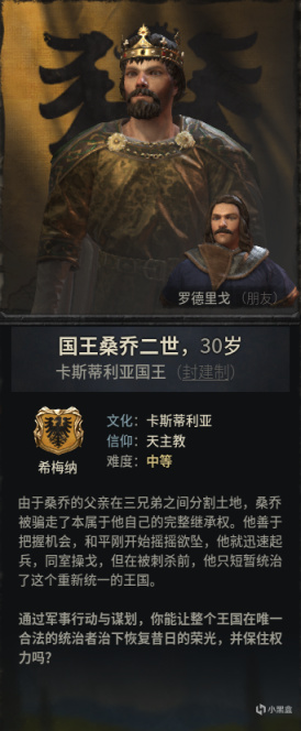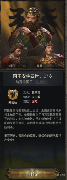 纳瓦拉国王,伊比利亚三兄弟和乌拉卡的表哥。难度在于有一堆宣称者和要刺杀他的人(为什么西班牙的事情总是那么糟糕?)。