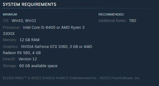 近日,魂类游戏新作《艾尔登法环》的发行商万代南梦宫以及开发商FromSoftware更新了该游戏的Steam产品页面,正式公开了该作的PC最低配置要求,但随后很快将其删除。