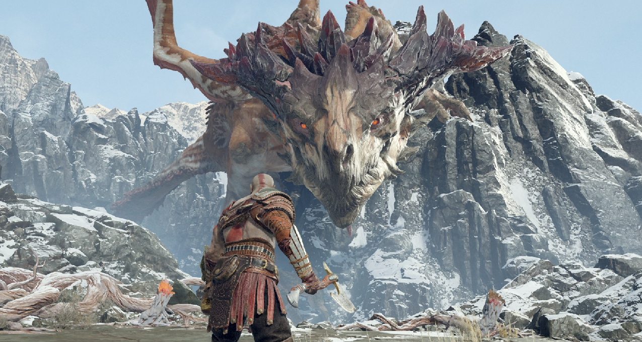 耶梦加得是一条巨大到足够环绕整个九界之湖的巨蟒,在诸神黄昏时与索尔对决,两名强者的战斗惊天动地,耶梦加得被索尔击飞撞到了世界树,因此掉进了国度之间的缝隙中,穿越到了如今的米德加尔特,在九界之湖中沉眠。因为它的存在,九界之湖水位上涨,淹没了提尔的神殿,导致国度间的旅行再无可能,但也万幸因为它的存在,当阿萨神族想要毁掉提尔的神殿时,发现神殿已经被水淹没,所以他们放弃了计划,神殿得以保存,为奎托斯后续的旅行奠定了重要的基础保障。