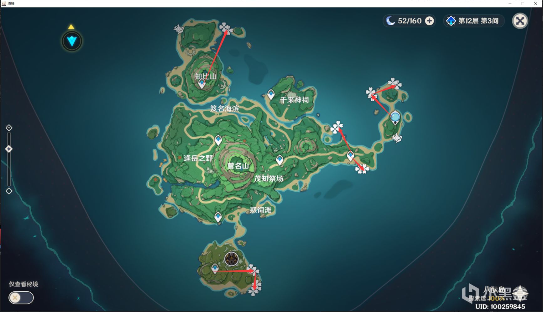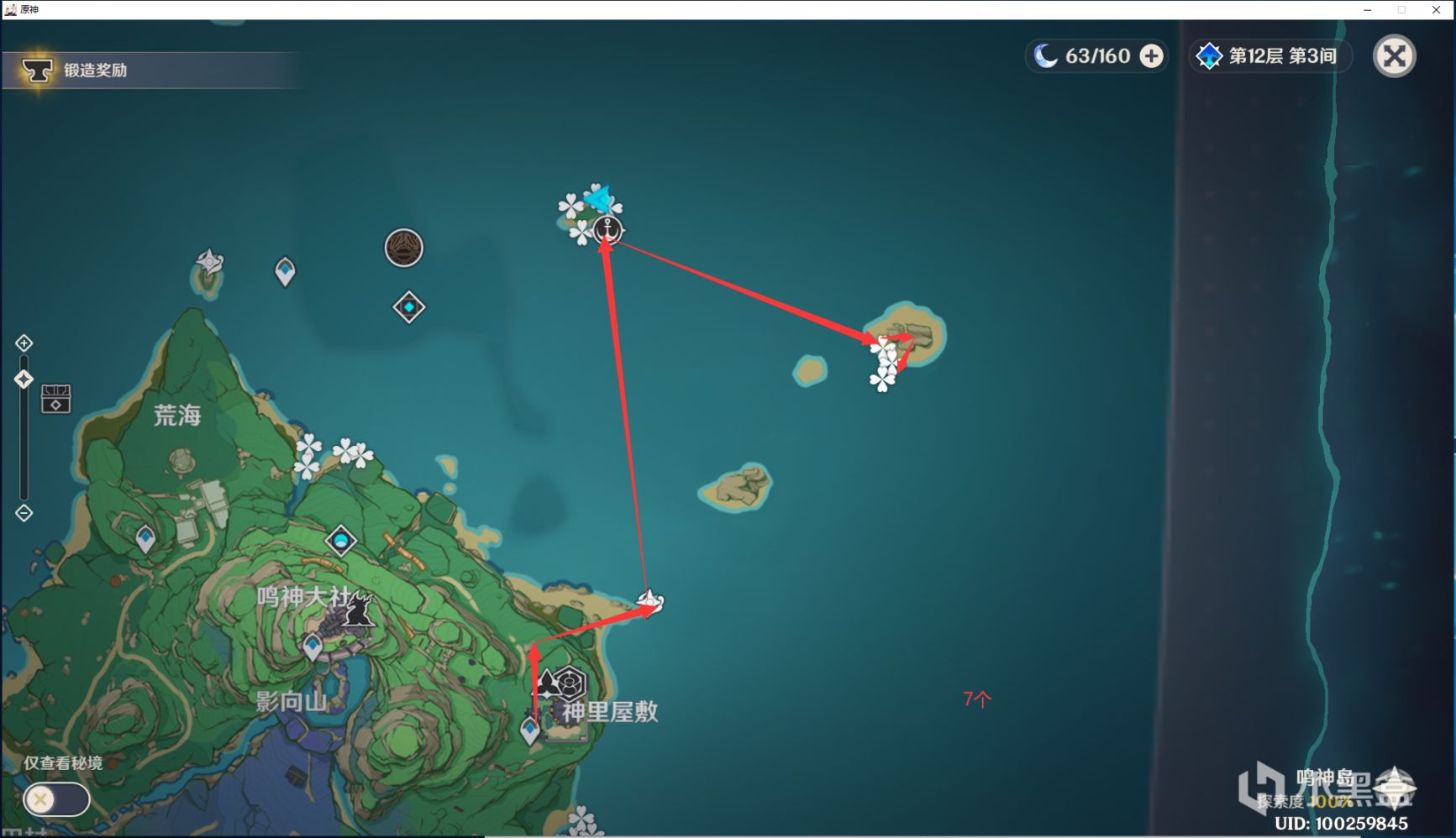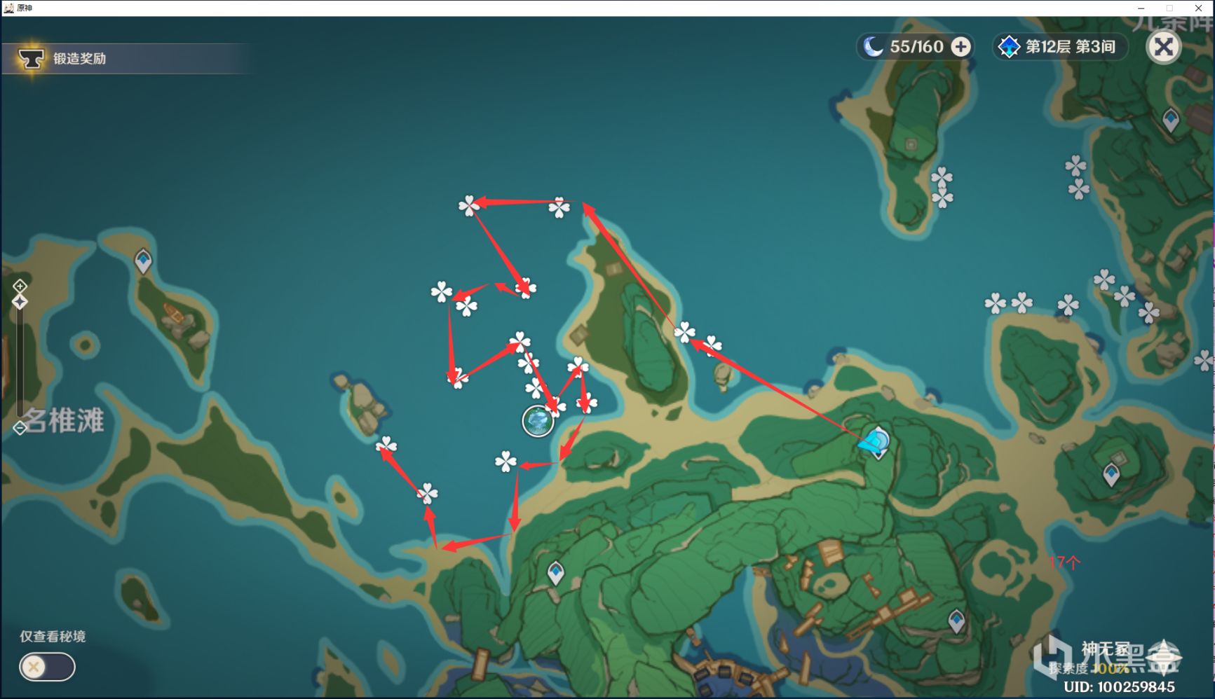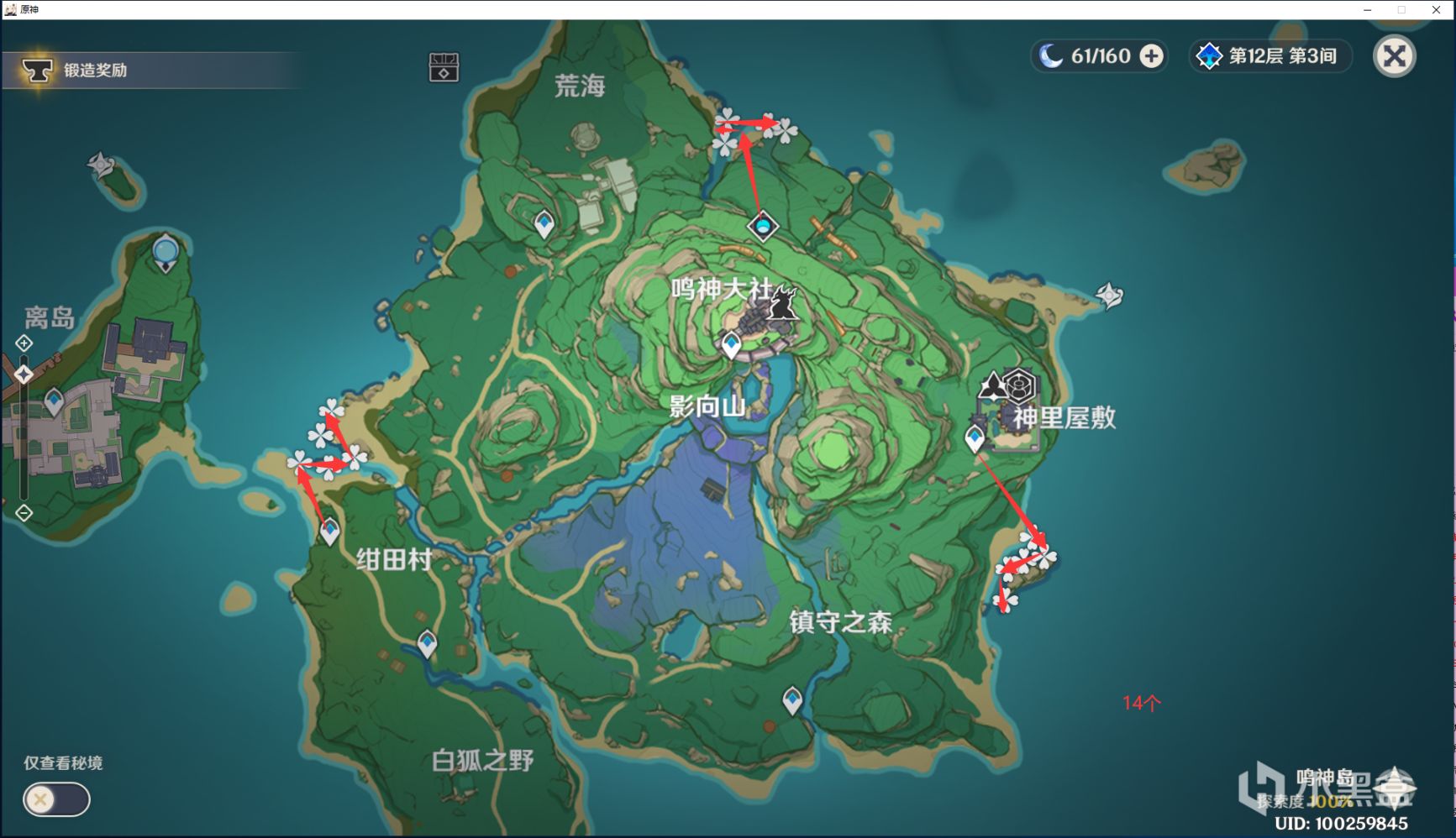 还有比较远的,真的急的时候,再来拿吧~~不急就留着,过几天,再把前面密的地方走一次就好了鸣神岛:7个