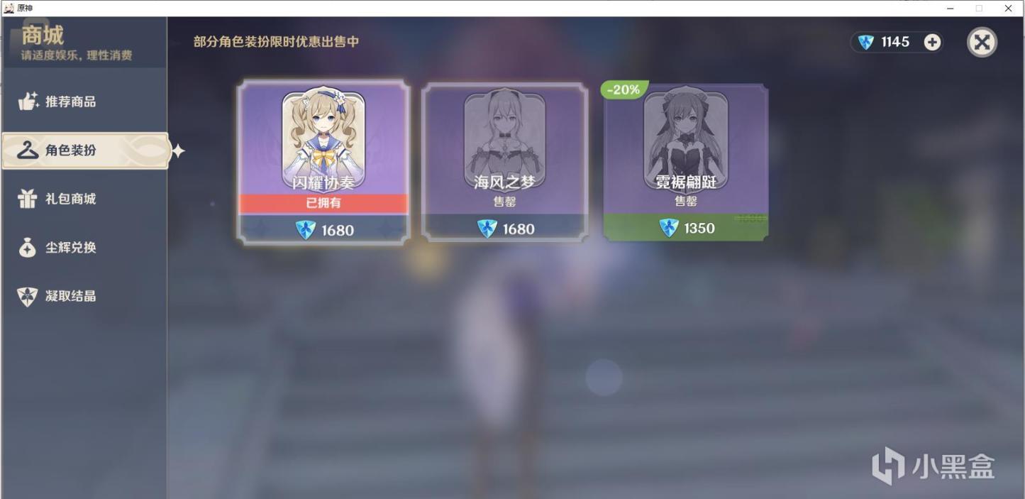 已出角色皮肤商城页面(芭芭拉和琴的夏日泳装,刻晴和凝光的盛日礼服,凝光皮肤2.4版本结束后上架商城)