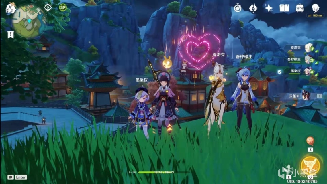整活党:游戏里通过活动可以领取许多小道具,以及风和岩系角色整活滴神,因此,大量长草玩家各种整活。B站有许多整活视频,很欢乐。自己和朋友一起整活,也是相当开心的。(下图是过年时候和同学四人一起游戏里放烟花,现实中无法相聚,游戏里共赏烟火)