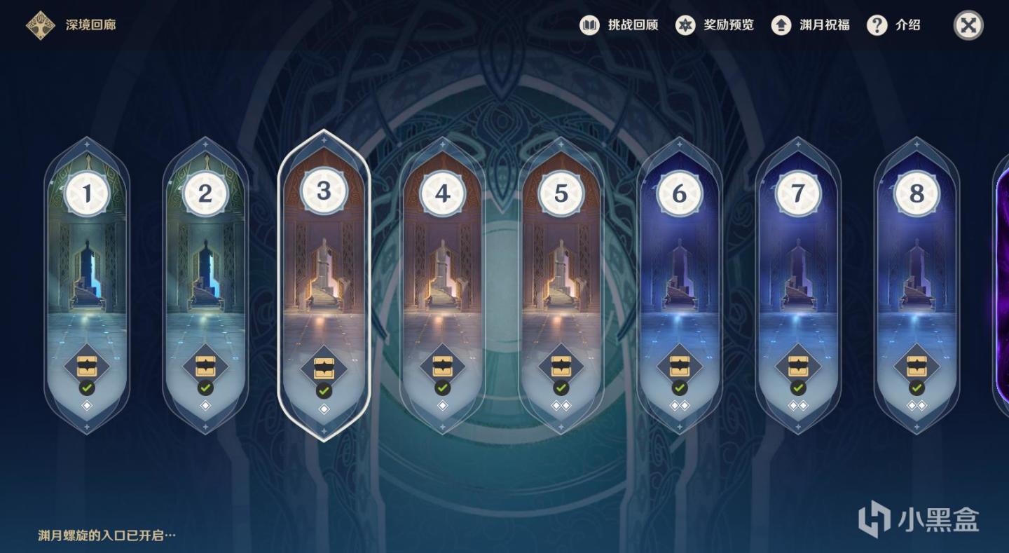 (5)深境螺旋,前面八层一次性,奖励拿完就没有了;后面四层每半个月更新一次。有原石可以拿,不过对于萌新玩家,深境螺旋能打就打,不能打也别勉强,优先打过3层拿到新角色香菱就好。(摸鱼玩家的本人12层基本不打,想多活几年。)