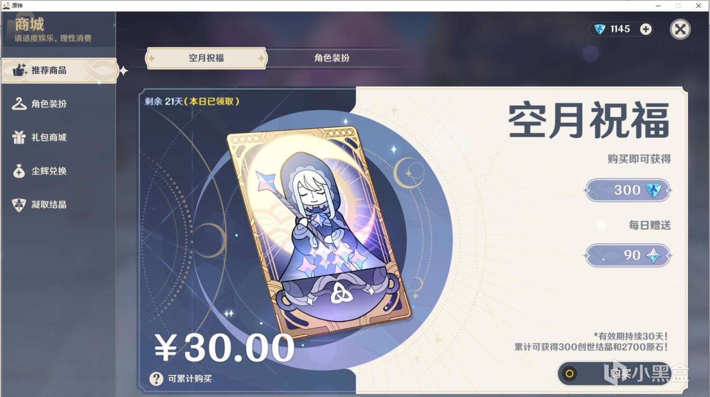 (2)月卡,30r购买,连续30天每天赠送90原石,以及购买时立刻获得300创世结晶。如果当天没上线,仍计算一天但没有补偿。