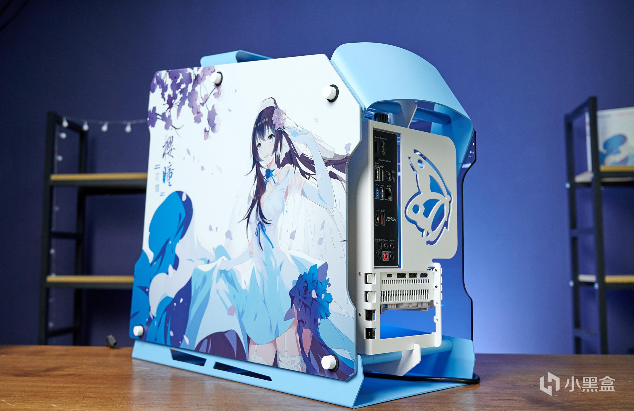 不仅在硬件上,盈通还在电脑主机的机箱上下足了功夫,可以说是把樱瞳的花嫁IP运用的的淋漓尽致!其采用CNC工艺处理,双面4mm优质钢化玻璃、两面通透;蓝白撞色搭配,迎合花嫁主题,同时,该机箱将右侧侧板改为了全面覆盖的樱瞳花嫁原画。