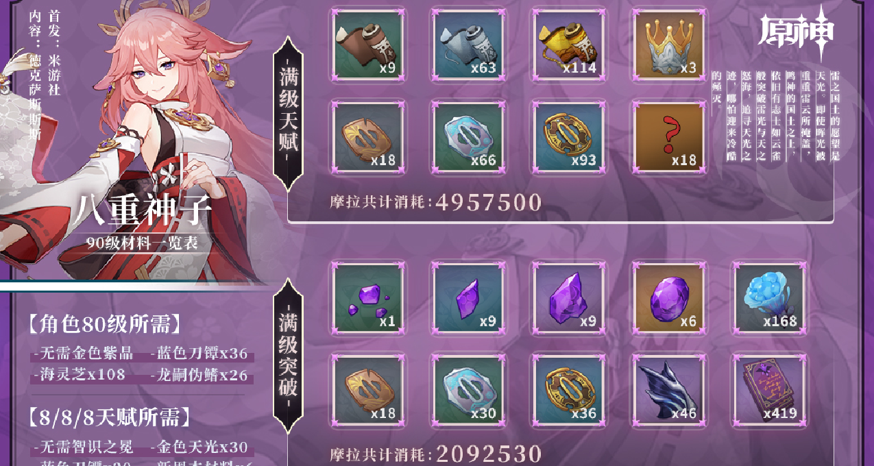 【材料用途】∶ 角色突破(申鹤、八重神子)