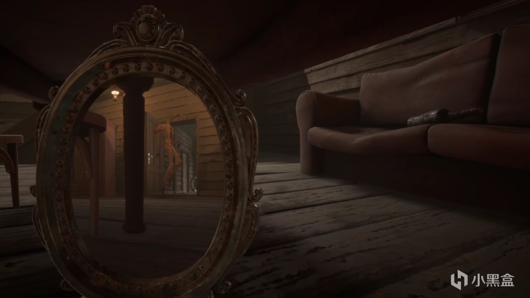 门开了什么都看不见,转身拿起镜子看反射赫然一个怪物,感觉很有意思
