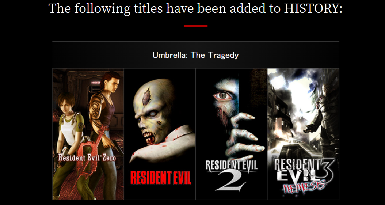 从1996年的初代开始,一直到2002年的《生化危机0》,官方按照发布时间轴更新了 《生化危机1》《生化危机2》《生化危机3》《生化危机0》的背景故事等内容。