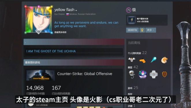 太子的steam主页 头像是火影 cs职业哥老二次元了(感觉可以做一期职业哥的那些二次元头像盘点)