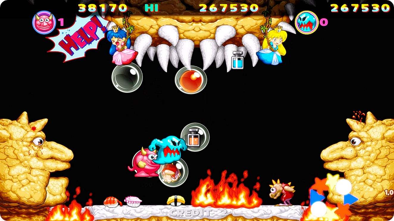 重制版和街机版一样支持双人游玩,同时在原版的50个关卡上新增30个关卡,新怪物和新boss也会出现。本作还将加入「怪物挑战」模式,让玩家可以操控怪物进行游戏。