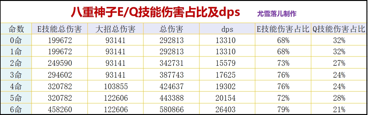 八重神子0命dps13310,2命dps15579,3命dps17625,4命dps19302,5命dps20154,6命dps26403。6命相对于0命,dps提升了100%左右,提升一般。