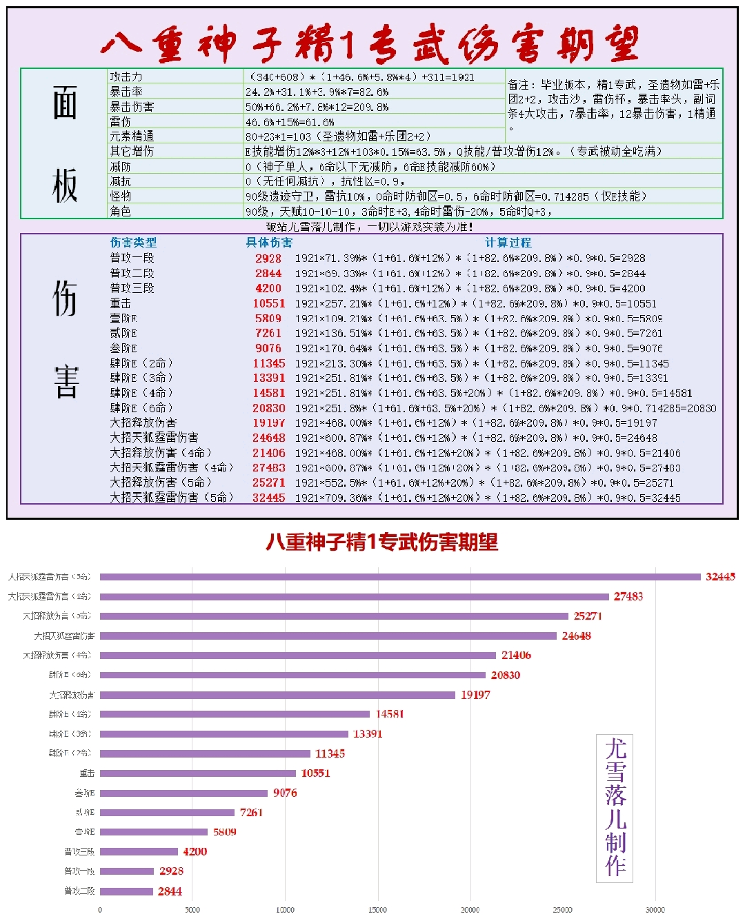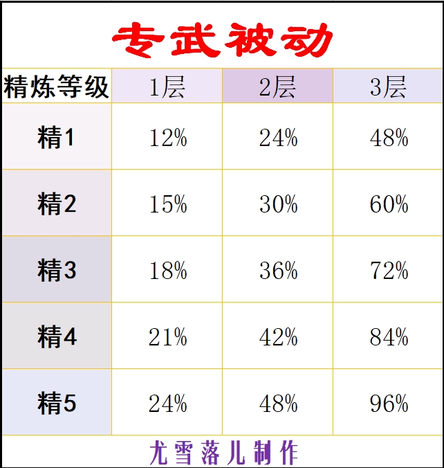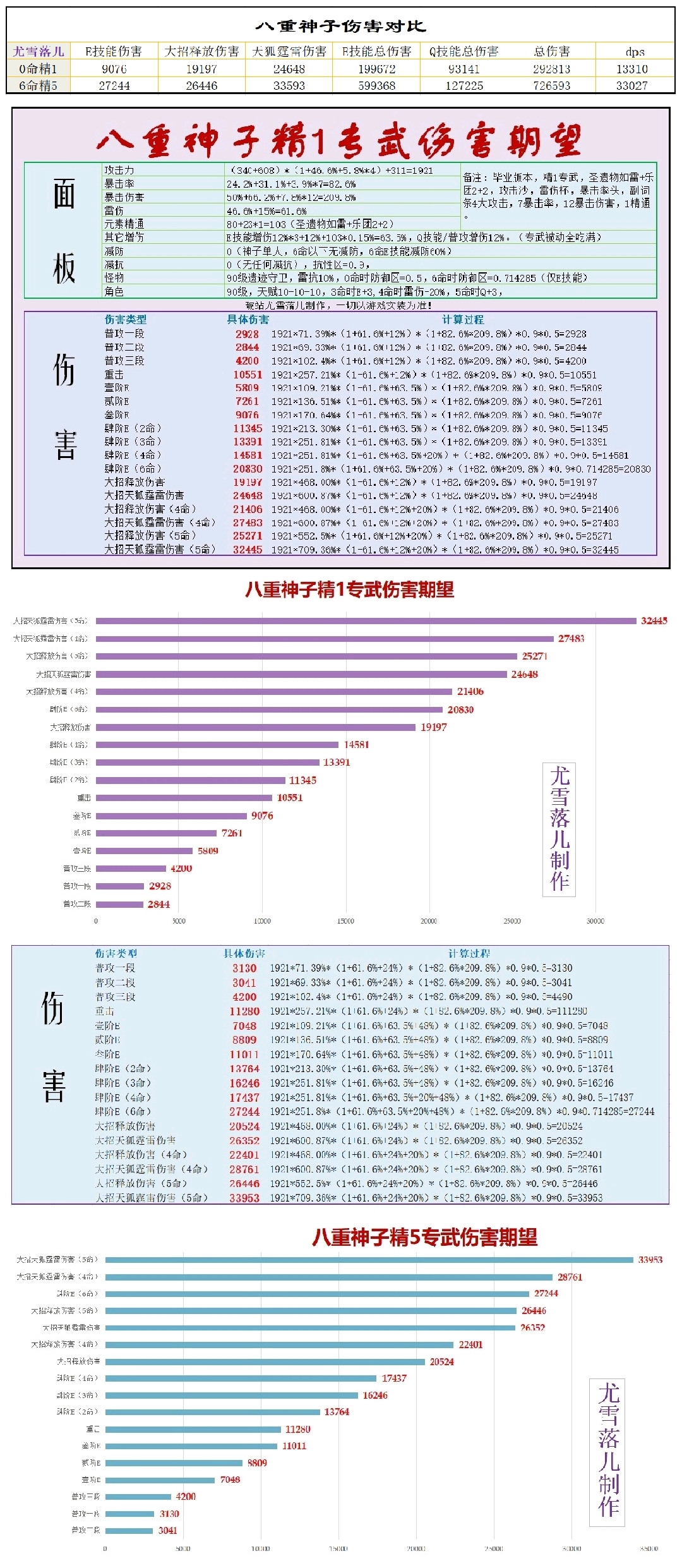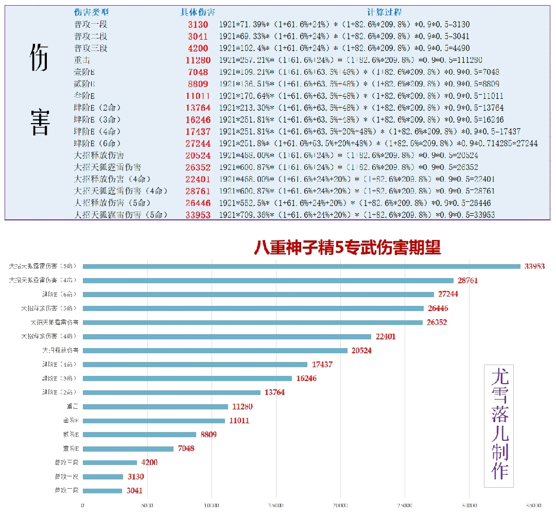精5专武伤害期望如图所示,0命时,E技能伤害11011,相当于精1,伤害提升了21%,每精炼一次,伤害提升5%左右。