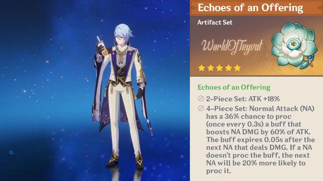 奉献之声:这套2件套同样是加攻,4件套则是每次普通攻击时有36%概率获得一个增益(cd0.3秒),增益效果为普通攻击造成的伤害提高基于自身60%的攻击力。如果说普通攻击时没有触发该增益,则下次普通攻击触发概率会提升20%。