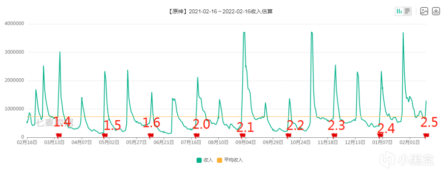 再来看下原神近1年的流水变化,可以看出神子的首日流水已经达到了某些卡池的最高峰,所以并没有想象中的那么差,同时也还有次日这个关键数据没出来。