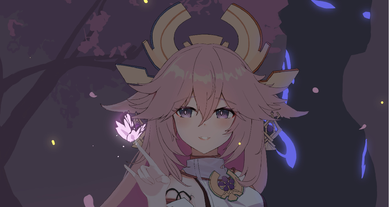 最后细化下背景画个滤镜,一副简单的八重神子插画就完成了,影和神子的贴贴图在画了,最后把无水印原图送上给大家,还请多多点赞关注支持下,谢谢!