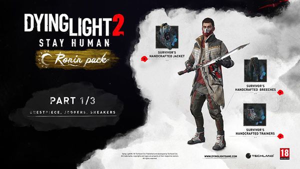 《消逝的光芒2》现已在Steam平台推出了浪人包免费DLC,该DLC共有三部分,完整的浪人包包含了一套套装和一把独特的剑。