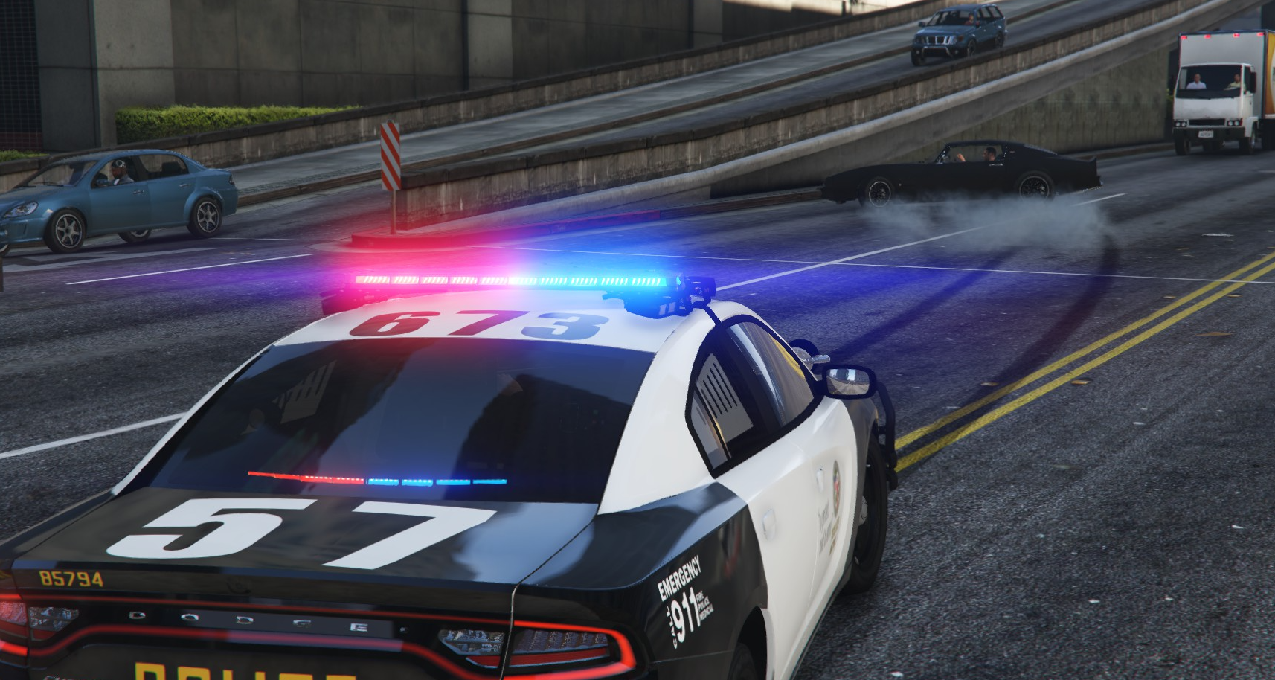 此时正值早高峰,路上挤满了急着去上班的车辆. 而在这片嘈杂拥挤的车流之中,正有一辆肌肉车和一辆警用拦截者上演着一出追车戏码. 那不死鸟一路高速向南逃窜,期间不断地变道,甚至屡次跨过双黄线进入对向车道,惹得沿途司机恨不得把自己的喇叭揪出来摁.