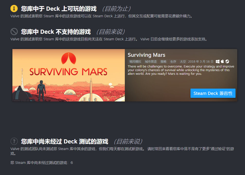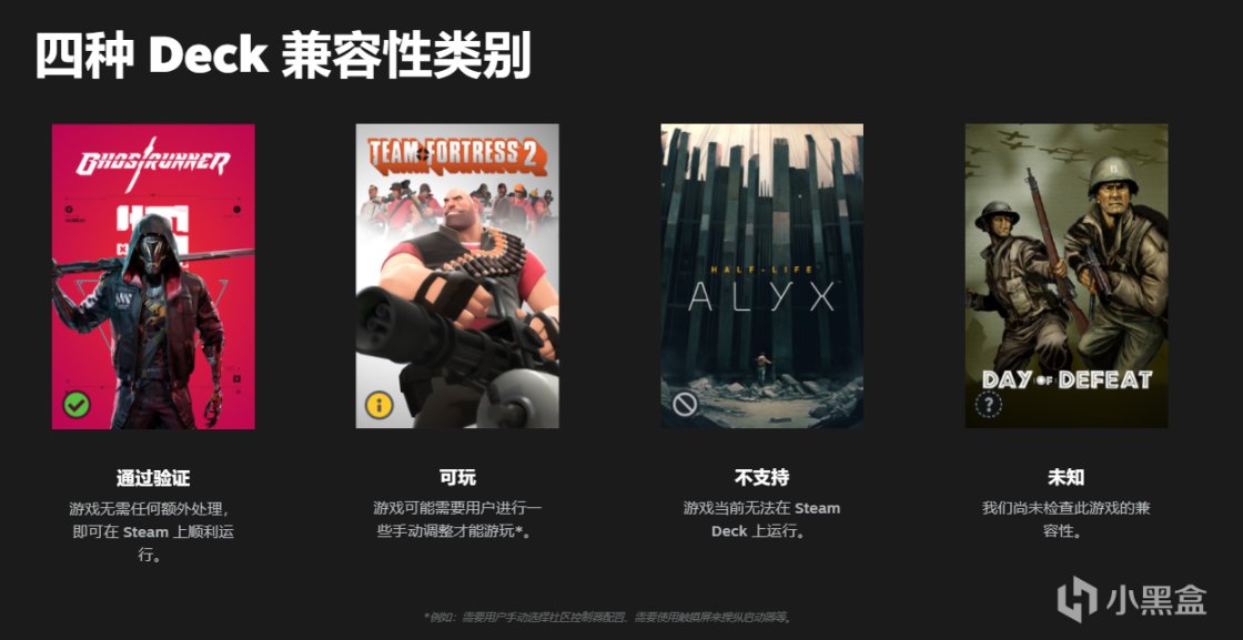 游戏的Steam Deck兼容性被分为4类:无需任何处理即可完美运行、需用户手动调整设置后可玩、无法运行、暂未测试。