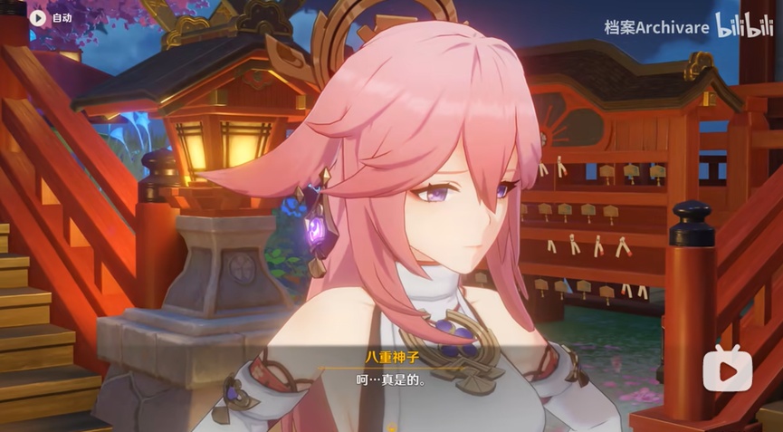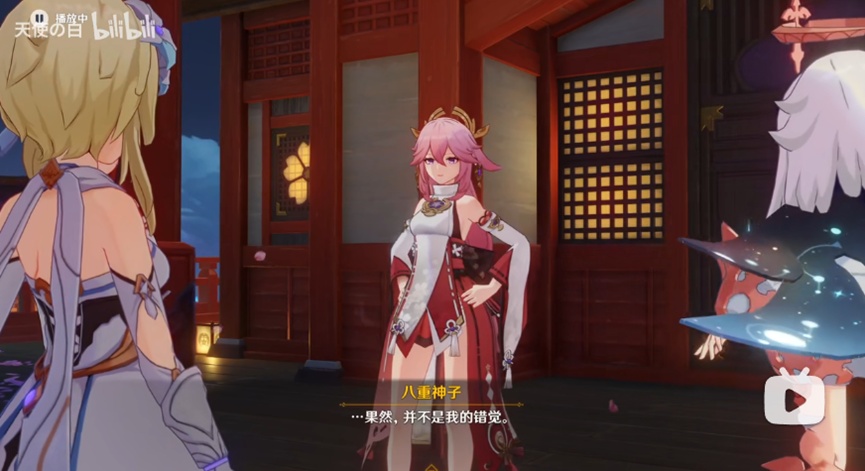 扯远了,言归正传,说回八重神子。在以上三种类别中,八重属于第二种渐进式角色塑造,在从2.0更新到2.5卡池落地,超过7个月以来的长期剧情更新中,八重神子各种不同的身份,性格属性被如拼图一样被一片片塑造并补完,展现在玩家眼前。八重神子在前瞻直播中首次亮相就为观众留下了优雅随性的印象,在继承旧有IP“八重”这一称谓的同时,一定程度上塑造了相比于《崩坏3rd》八重樱年轻冷峻正相反的成熟+略显轻佻的角色形象。很显然,八重神子与八重樱在如神社,巫女,粉毛,狐狸等人物设定标签上高度雷同,而在如性格,言谈,行为举止,以及配音风格的选择体现出二者人物性格标签完全相反。