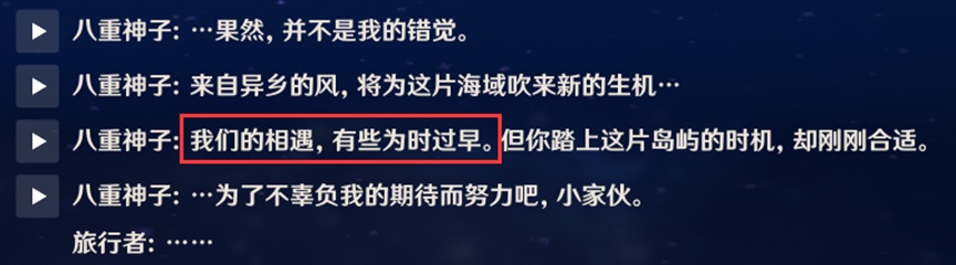 很显然,八重之前的一系列行为都太过于精通人情世故,太过于完美的扮演好了自己处于“人间”的角色,太过洒脱的游戏人间,享受种种轻小说与美食,太过轻松的在稻妻搅动风云,掌控一切。