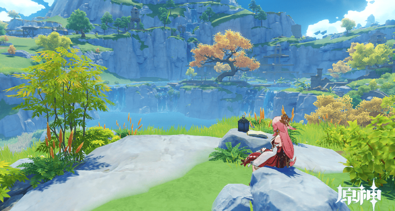前些日爷和神子在璃月闲逛在遁玉陵边,天气晴朗,特此留下了一张画片。不得不说璃月的植物种类还是蛮多的。