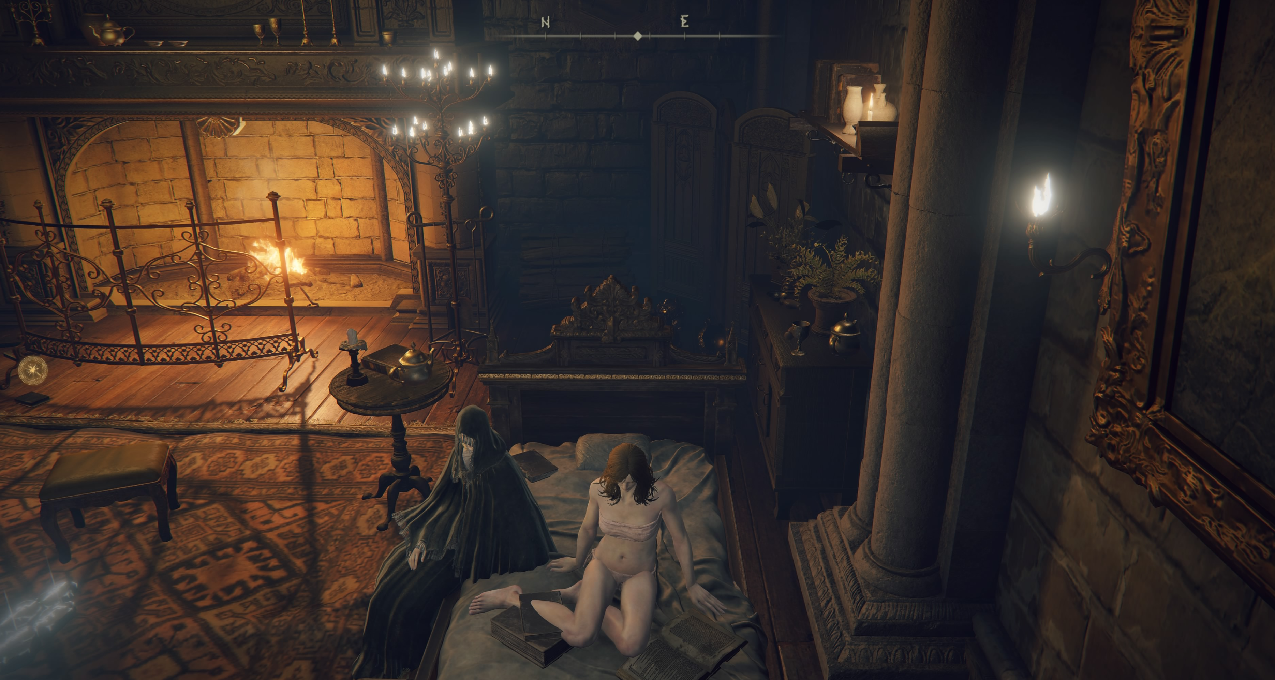 如果玩家遇到了靠双腿跑不过的怪,或是因为只靠双腿推图太慢导致玩家缺乏了探索热情怎么办?于是,马出现了。马出现的这个点很有意思,在风暴关卡的入口处坐了赐福后,梅莲娜(老婆!)会给玩家一个口哨来召唤马匹,而恰巧风暴关卡很难跑酷过去,周围有大量的弓兵和一个巨人。于是,玩家学会了在明显看起来很不妙的地方骑马冲过去,而有了马,在地图上移动起来也方便了许多。在初始地东处,有一片湖泊,在那边玩家会遇到第一个不得不骑马作战的Boss:飞龙亚基尔。飞龙的很多攻击靠跑步和翻滚基本上无法躲避,需要非常强大的机动性才能跑进安全区,那么骑马作战就成为了几乎唯一的选择。于是,玩家学会了:马战的作用。在一些悬崖峭壁上,会有许多横插的墓碑,这种突兀的视觉表现相较于魂系列前代不同,都是有其功能性的。玩家可能会抱着试一试的心态去挑战在墓碑之间骑马跳跃,最终会安稳落地。在悬崖底下,可能会存在上升气流,骑马停在上升气流的中心可以直接跳到悬崖上。于是玩家学会了利用墓碑和气流进行高低差纵深快速移动。