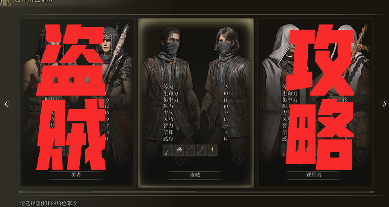 作为一个老盗贼玩家,凡是游戏里有这个职业就必选,老头环也不例外,虽然公认盗贼很废,仍难割舍旧爱。