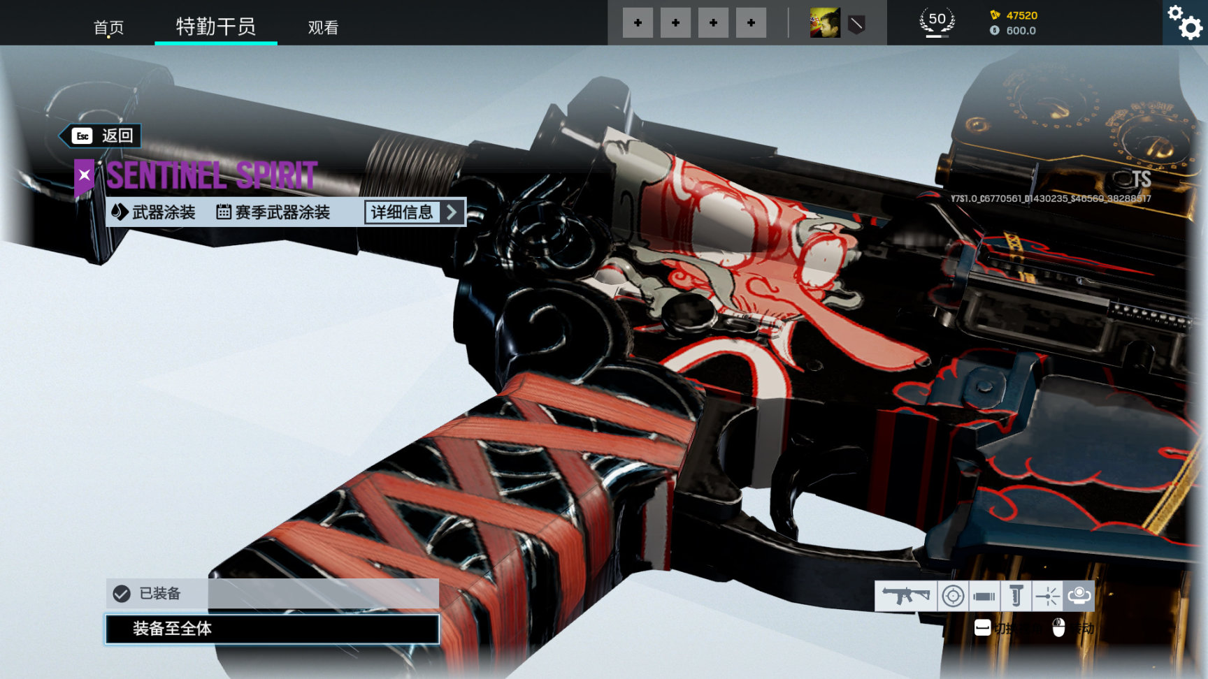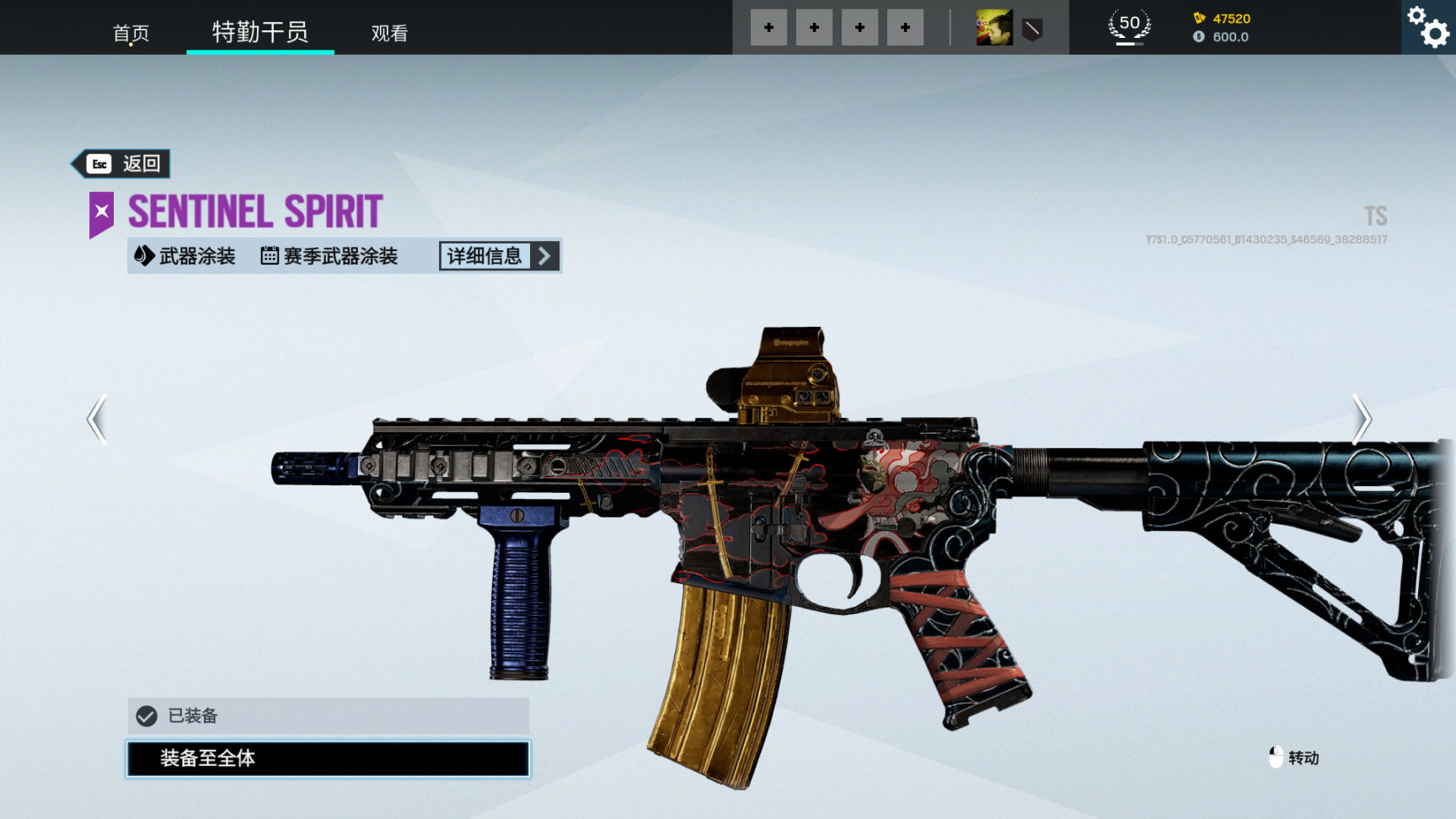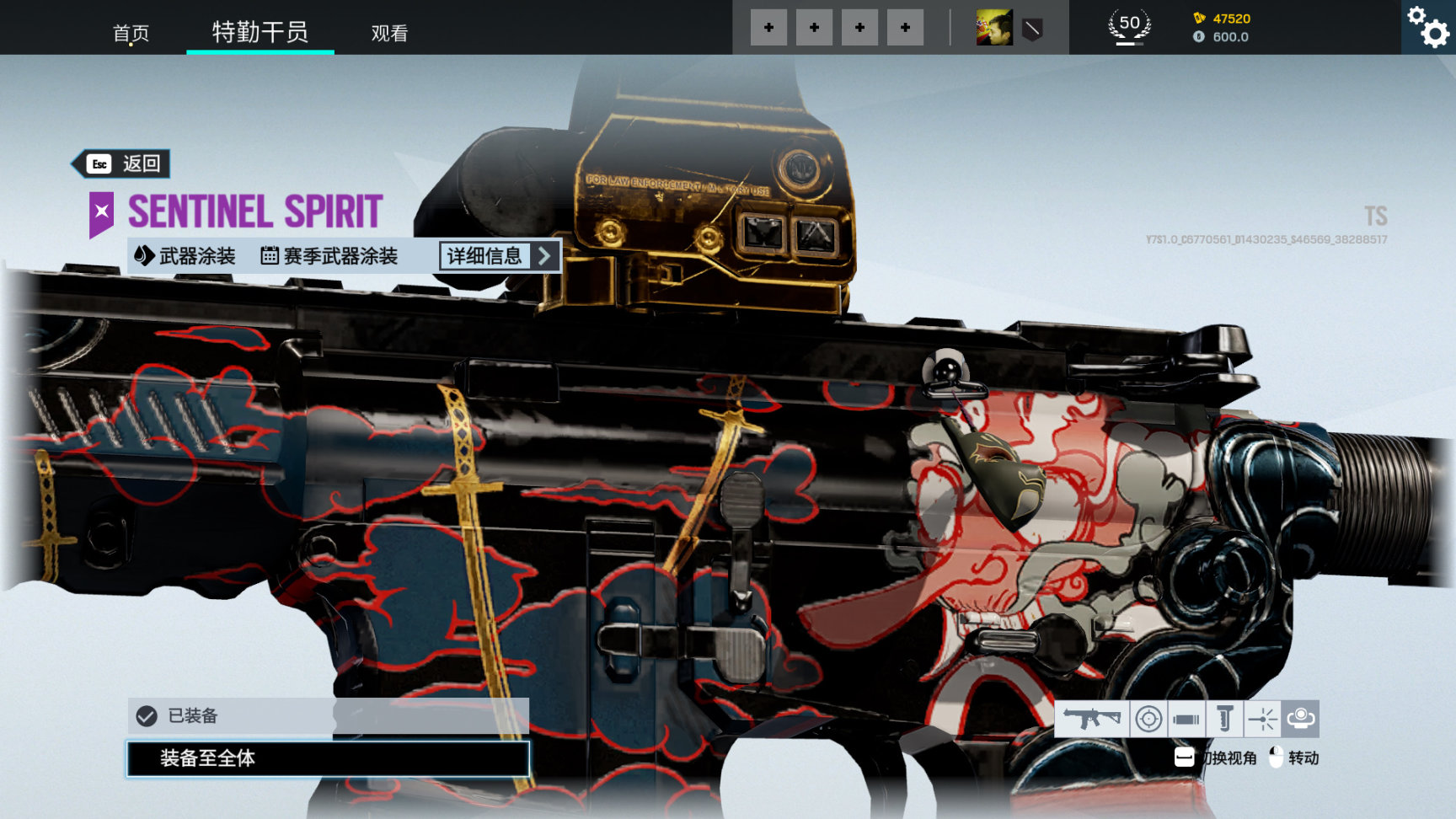 活动通用武器皮 哨兵之魂,枪上有日本传说的天狗造型,红脸长鼻