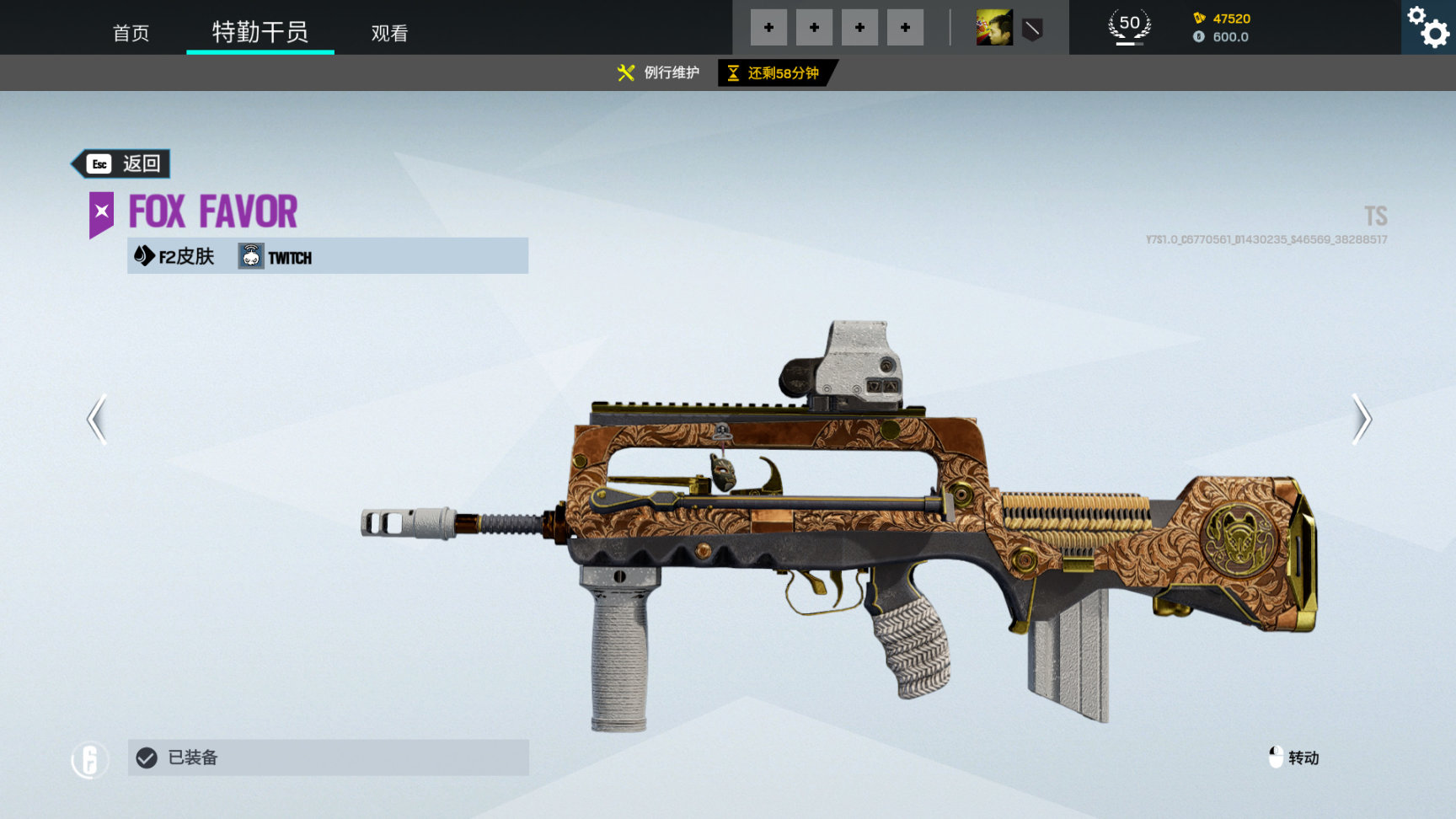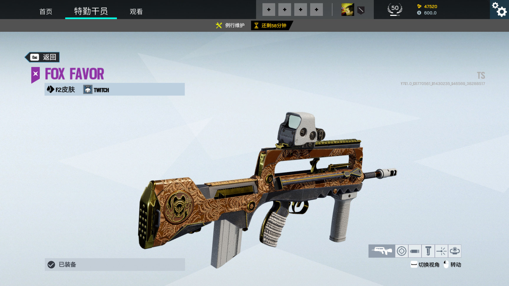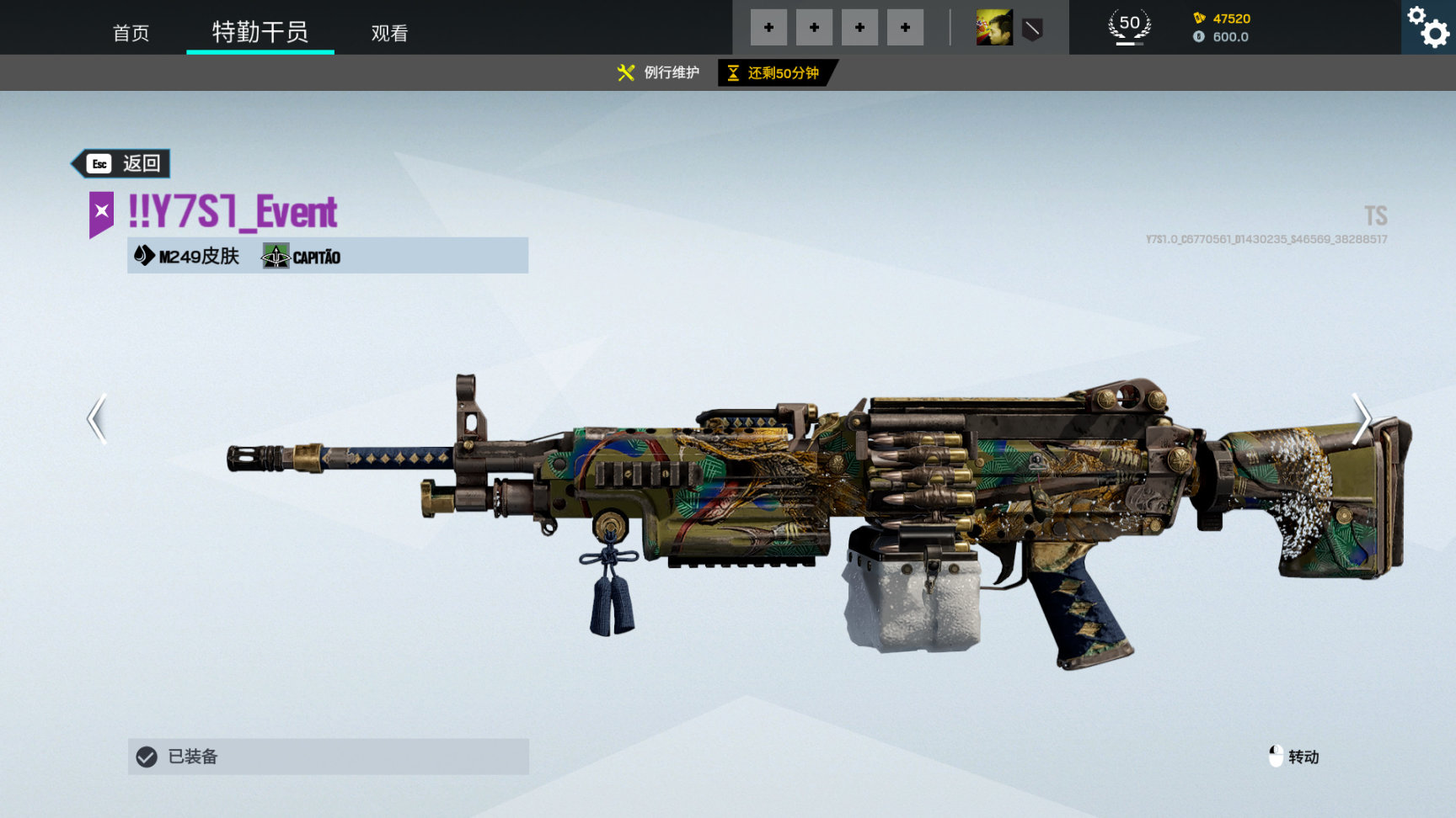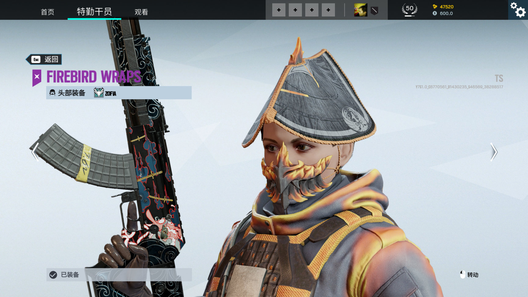 活动通用武器皮 哨兵之魂,枪上有日本传说的天狗造型,红脸长鼻