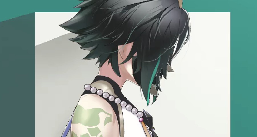 草图,选了魈的侧面,因为这个角色的发型非常有型,所以选了一个全侧的角度,刚好也能给花臂足够的刻画空间