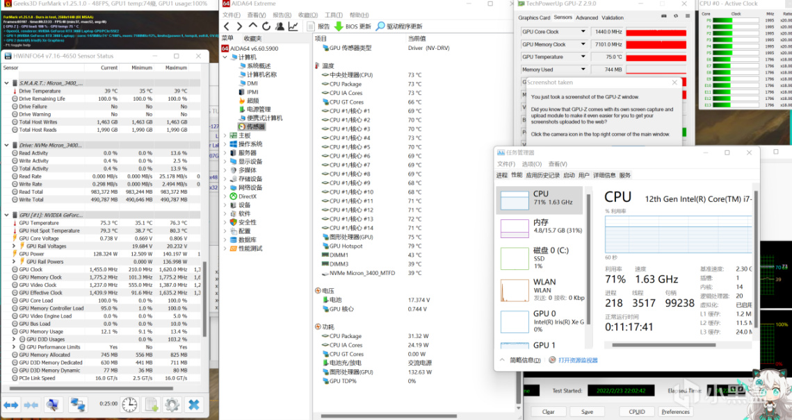 这颗GPU那就更是老熟人了,但是在天选3上那又是又有新表现,直接给拉到了满血,加上PPAB多给的10W,整体满功耗来到了140W: