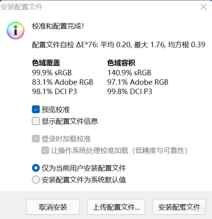 具体表现上,我们采用Spyder X 较色仪配合Display ACL软件对屏幕进行校色后测试,实测色域覆盖99.9% sRGB,98.1% P3,色域容积则略有超出: