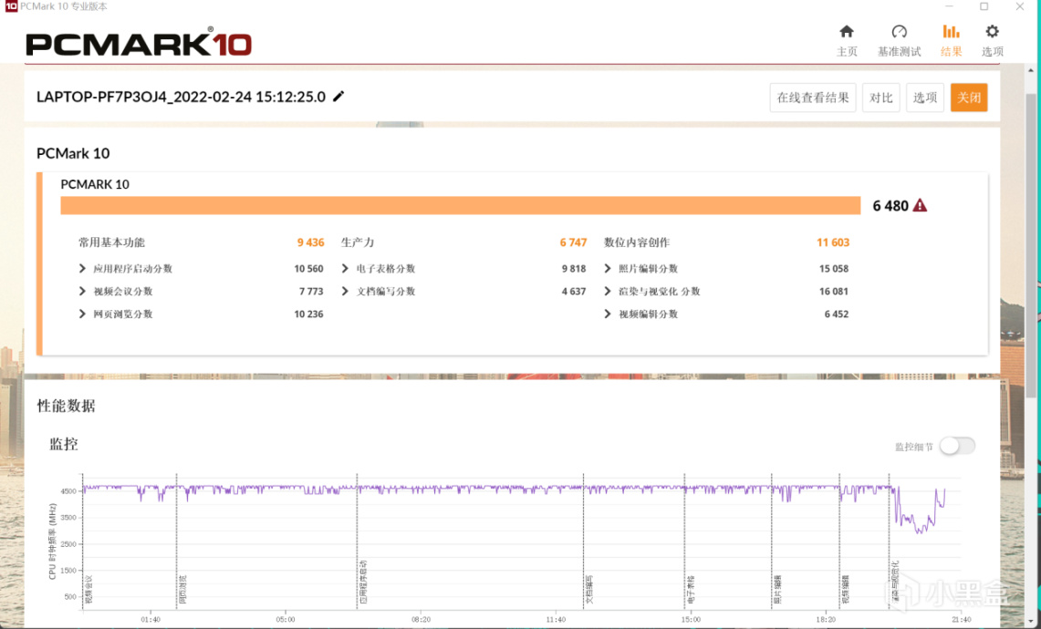 具体生产力测试方面,PC MArk 10 基准测试成绩为6480: