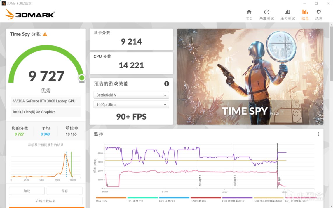 在3D MARK的TS跑分测试中,直接拉到了9214的显卡分: