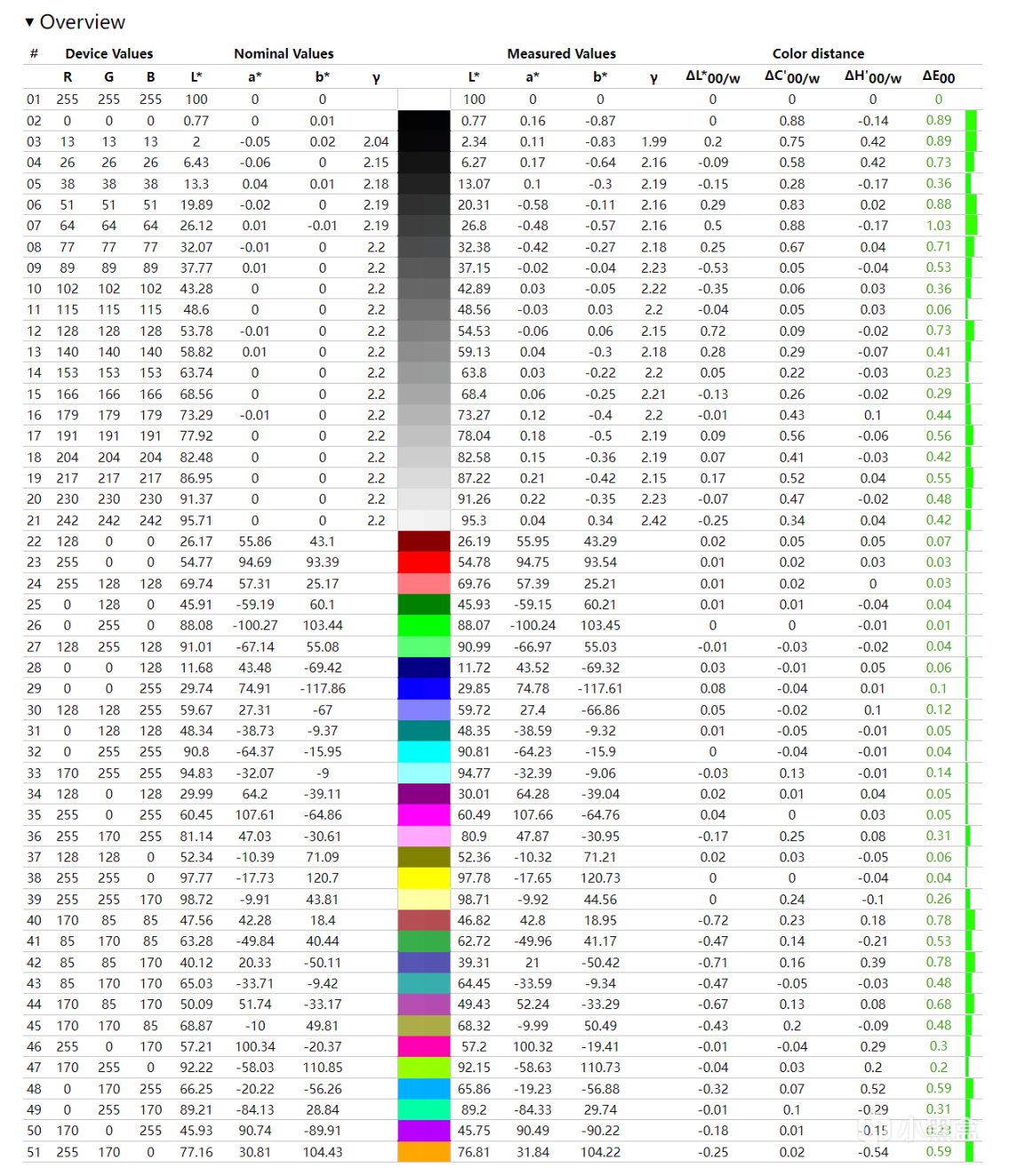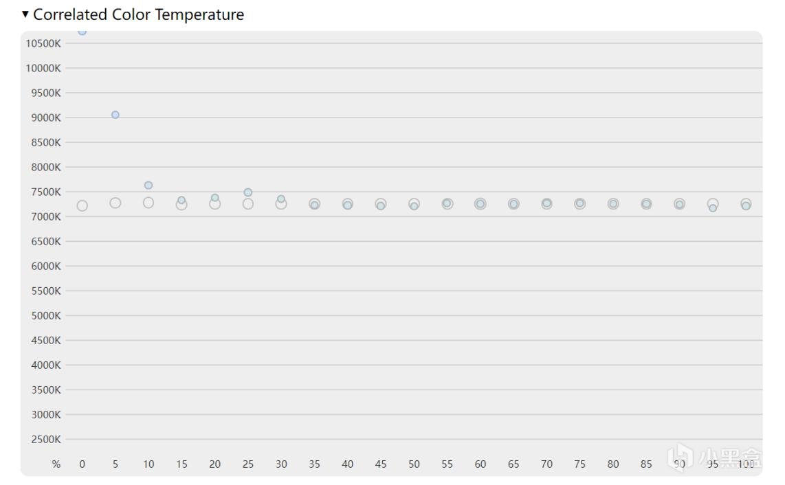 色温表现也相当平均,10%以上亮度基本上没有太大的色温偏差: