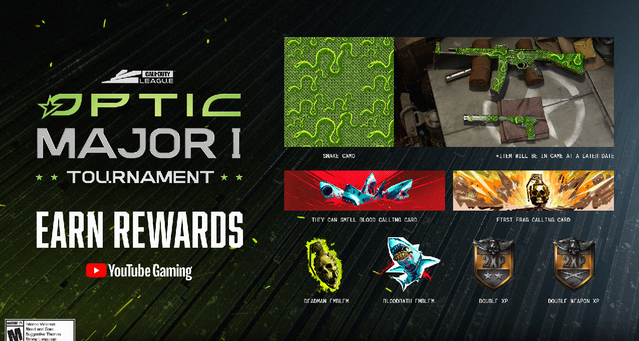 使命召唤联赛CDL Major1周末将于3月4日~7日开赛,观赛将获得蛇纹迷彩、名片、纹章等奖励。
