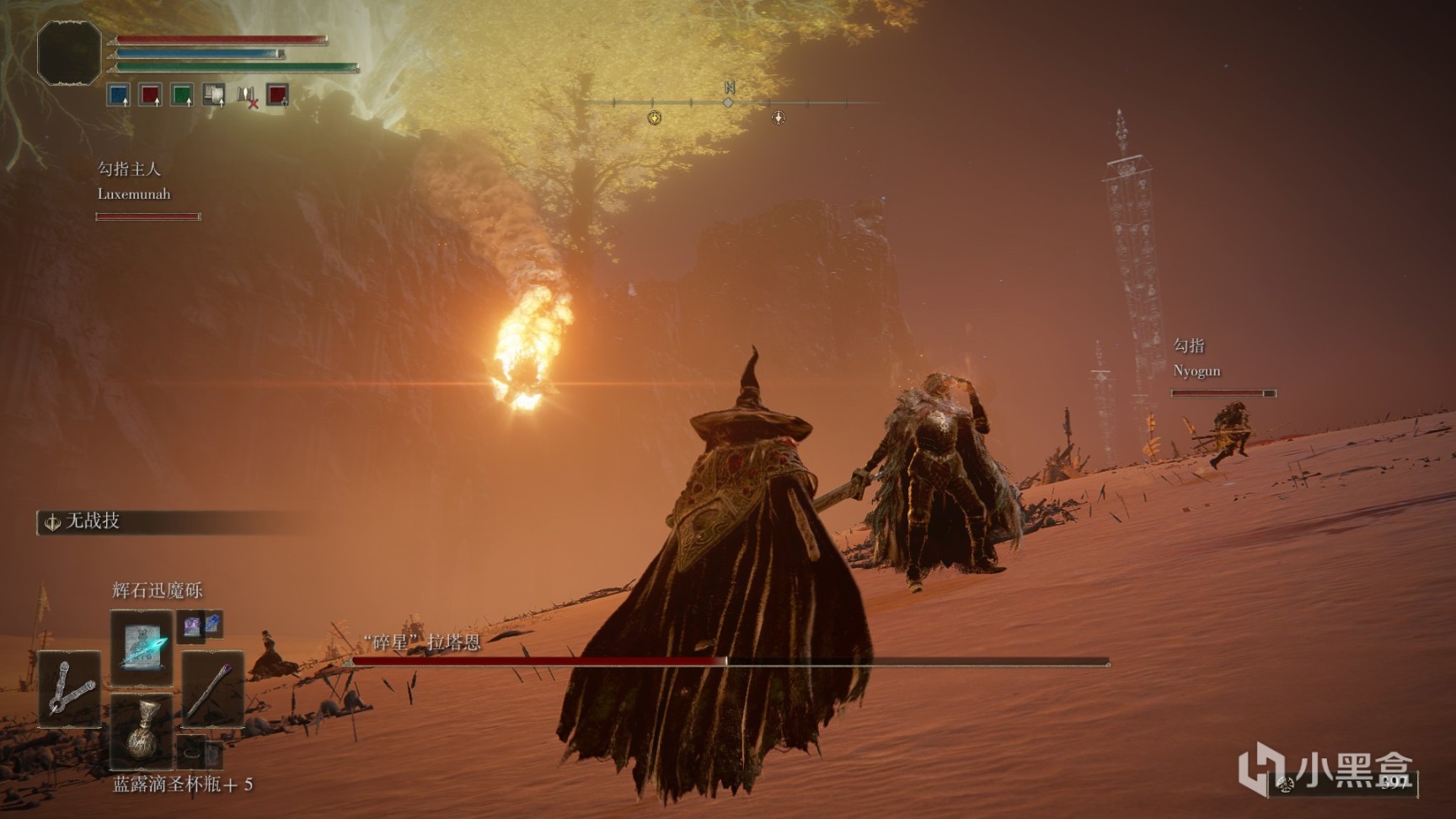 所以这也是我为什么说《艾尔登法环》的开放世界是动态的,不同心态之间的玩家对于boss的处理方式也不同,而不同运气的玩家也很有可能会造成较大的体验差距。