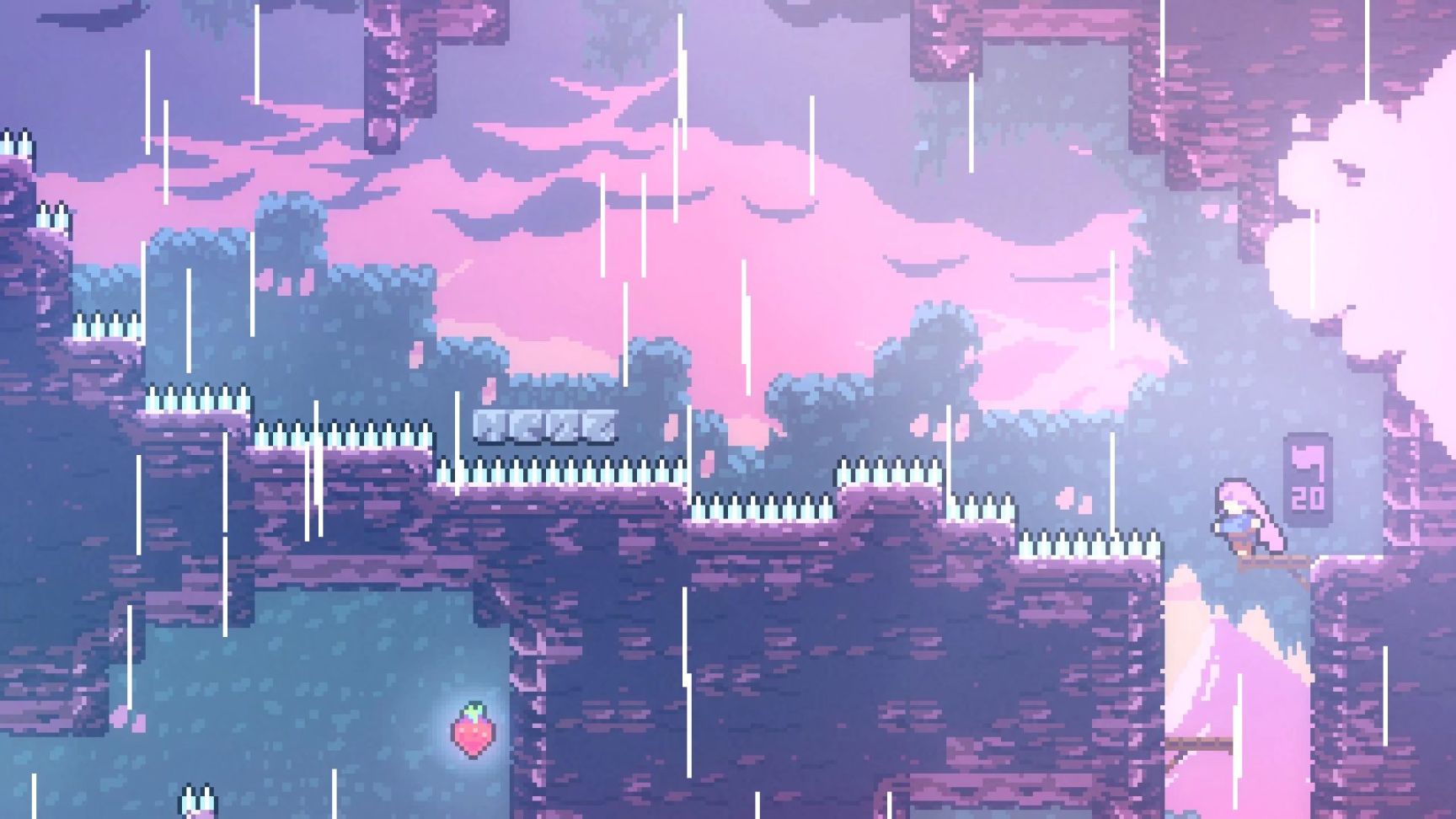 关于隐藏的草莓:除开正常的跳跃区域外,草莓还经常藏在你即将下一关的地方,一般都藏的特别深,注意周围地形是否对称或者是否有隐藏墙壁。